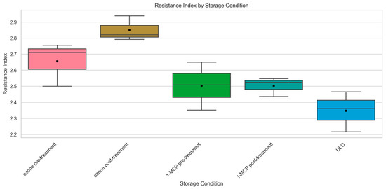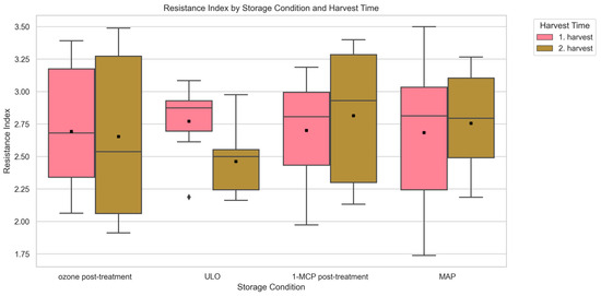 3.7. Effect of Storage Conditions on Resistance Index Prior to Induced Damage