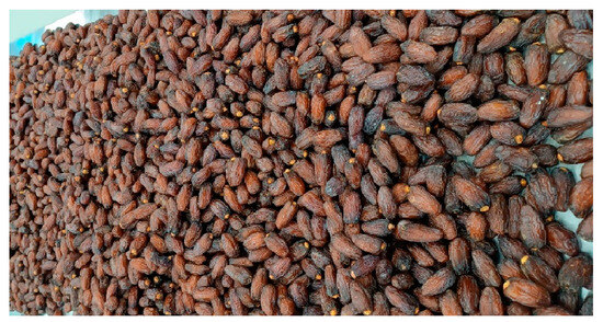 In more detail, freezing and frozen storage are applied to date fruit (especially soft cultivars) with the purpose of extending the shelf life, ensuring long-term conservation by stopping enzymatic activity and inhibiting the growth of microorganisms [14]. Various freezing treatments, mainly comprising cryogenic freezing, individual quick freezing, and conventional slow freezing, were evaluated at the same temperature of −20 °C on the ‘Barhi’ date cultivar based on textural characteristics and some limited physicochemical attributes. The results exhibited different changes in assessed quality attributes under frozen conditions for the same cultivar [14,15]. Moreover, the effect of prolonged freezing storage at −18 °C on the physical and chemical parameters of some Northern Omani date cultivars was studied for 6 months. Accordingly, it was mentioned that physical attributes were decreased compared to an increase in total soluble solids (TSSs), titratable acidity, pH, and biomass [16]. Another investigation focused on assessing the overall quality of the ‘Deglet Nour’ Tunisian date cultivar during storage of 10 months at very low temperatures of −20 °C, −40 °C, and −80 °C and did not find any significant change in the overall quality of stored date fruit [17]. For ‘Mejhoul’, the only available study dealing with freezing treatment was limited to determining the effects of freezing rates at −20 °C, −25 °C, and −30 °C on the textural profile, color, TSSs, and electrolyte leakage without any investigation into the behavior of this cultivar under long-term frozen storage [18]. In addition, according to the available literature, it was shown that the assessment of date fruit quality during frozen storage was limited to some physical and chemical characteristics based on destructive analysis. However, non-destructive methods using image features as attributes and artificial intelligence-based techniques as analysis tools could constitute an alternative for monitoring and evaluating the behavior of date cultivars [7,19].