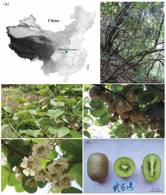 - Hu, G.; Xia, W.; Zheng, L.; Rao, H.; Lei, M.; Wang, J.; Zhao, T.; Li, Z.; Zhong, C. Investigation and fruit genetic diversity analysis of wild Actinidia germplasm resources in Tongshan County, Hubei Province. Plant Sci. J. 2021, 39, 620–631. (In Chinese) [Google Scholar] [CrossRef]