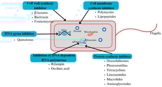 - Rice, L.B.; Bonomo, R.A. Mechanisms of Resistance to Antibacterial Agents. In Manual of Clinical Microbiology; Versalovic, J., Carroll, K.C., Funke, G., Jorgensen, J.H., Landry, M.L., Warnock, D.W., Eds.; Wiley: Hoboken, NJ, USA, 2011; pp. 1082–1114. ISBN 978-1-68367-411-5. [Google Scholar]
