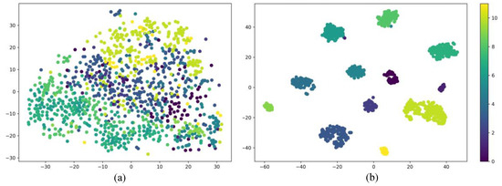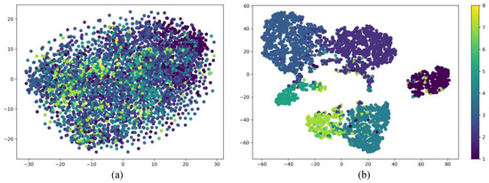 Figure 9, we used the t-Distributed Stochastic Neighbor Embedding (t-SNE) method to project the original data and the features extracted by our model into a two-dimensional space for both datasets. The t-SNE visualization analysis indicates that the chaotic distribution of the original signals improved significantly after feature extraction by our model, resulting in better classification performance. Similarly, on the PP dataset, the different categories of data were also well differentiated.