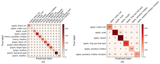 18] were chosen for our study. The Plant Village dataset is a public dataset of plant disease images, covering 14 plant species and 26 disease classes, with a total of 54,000 images. It includes common crops and fruits, such as maize, tomato, and apple. The dataset was manually collected, classified, and annotated by botanists and horticulturists, and it is widely used for plant disease research and agricultural monitoring. Due to the fact that the images in the PV dataset were taken in a laboratory setting, they are not sufficient for recognizing plant leaf diseases in real-world scenarios. Therefore, this study also selected the PP dataset to validate for generalization capability. The PP dataset is a competition dataset from FGVC7 and FGVC8, comprising 18,632 images of apple leaf diseases with complex backgrounds. The dataset composition used in this study is shown in