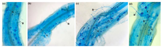 - Liu, C.Y.; Guo, X.N.; Alqahtani, M.D.; Wu, Q.S. Funneliformis Mosseae Exhibits Greater Improved Effects on Root Hair Development and Phosphorus Uptake in Trifoliate Orange than Claroideoglomus etunicatum. Rhizosphere 2025, 34, 101081. [Google Scholar] [CrossRef]