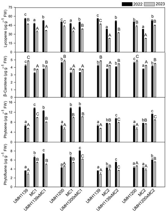 42]. Breeding lines (UMH1139 and UMH1200) exhibited the highest concentrations of lycopene and