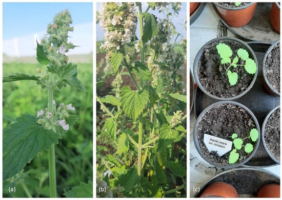 - Ibrahim, Z.S.; Qayssar, R.; Sardar, S.; Jamal, E.; Senjawi, L.S.M.; Sleman, E.; Fazil, H.; Porwal, O. Catnip (Nepeta cataria L.): Recent advances in pharmacognosy, cultivation, chemical composition and biological activity. J. Drug Deliv. Ther. 2022, 12, 254–263. [Google Scholar] [CrossRef]