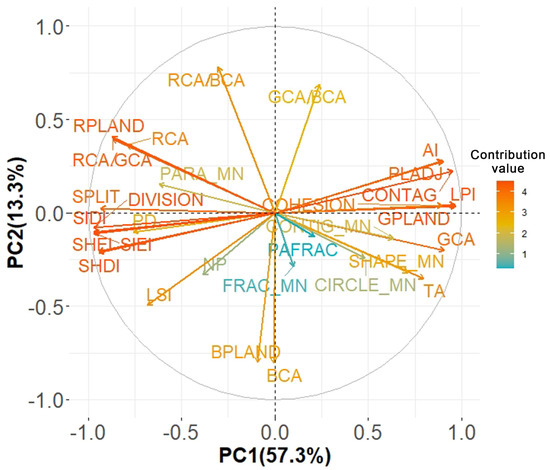 The landscape indexes were divided into three levels: (1) patch level (processed for individual patches); (2) class level (processed for different types of patches); and (3) landscape level (processed for different land cover classes of patches).