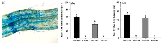 - Cheng, S.; Zou, Y.N.; Kuča, K.; Hashem, A.; Abd_Allah, E.F.; Wu, Q.S. Elucidating the mechanisms underlying enhanced drought tolerance in plants mediated by arbuscular mycorrhizal fungi. Front. Microbiol. 2021, 12, 809473. [Google Scholar] [CrossRef]