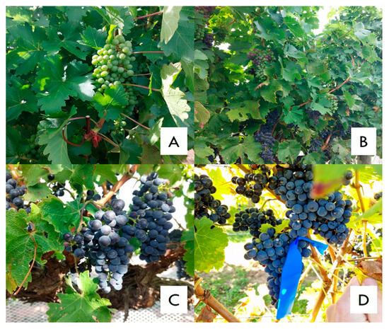 - Coombe, B.G. Research on development and ripening of the grape berry. Am. J. Enol. Vitic. 1992, 43, 101–110. [Google Scholar] [CrossRef]