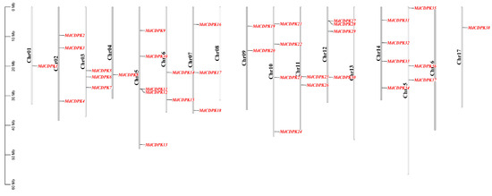 3.1. Identification and Chromosomal Distribution of CDPK Gene Family in Apple