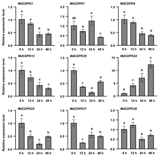 3.4. Expression Analysis of MdCDPKs During C. gloeosporioides Infection