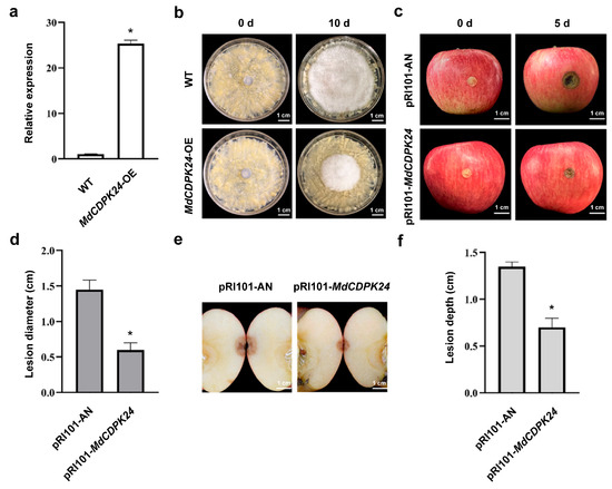 3.5. MdCDPK24 Positively Regulates Apple Bitter Rot Resistance