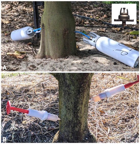 - Berger, C.; Laurent, F. Trunk injection of plant protection products to protect trees from pests and diseases. Crop Prot. 2019, 124, 104831. [Google Scholar] [CrossRef]