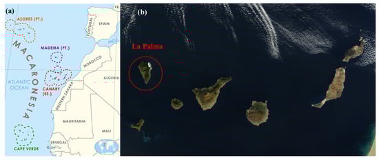 (a) Map of Macaronesia [8]; (b) Canary Islands Archipelago and La Palma Island [9].