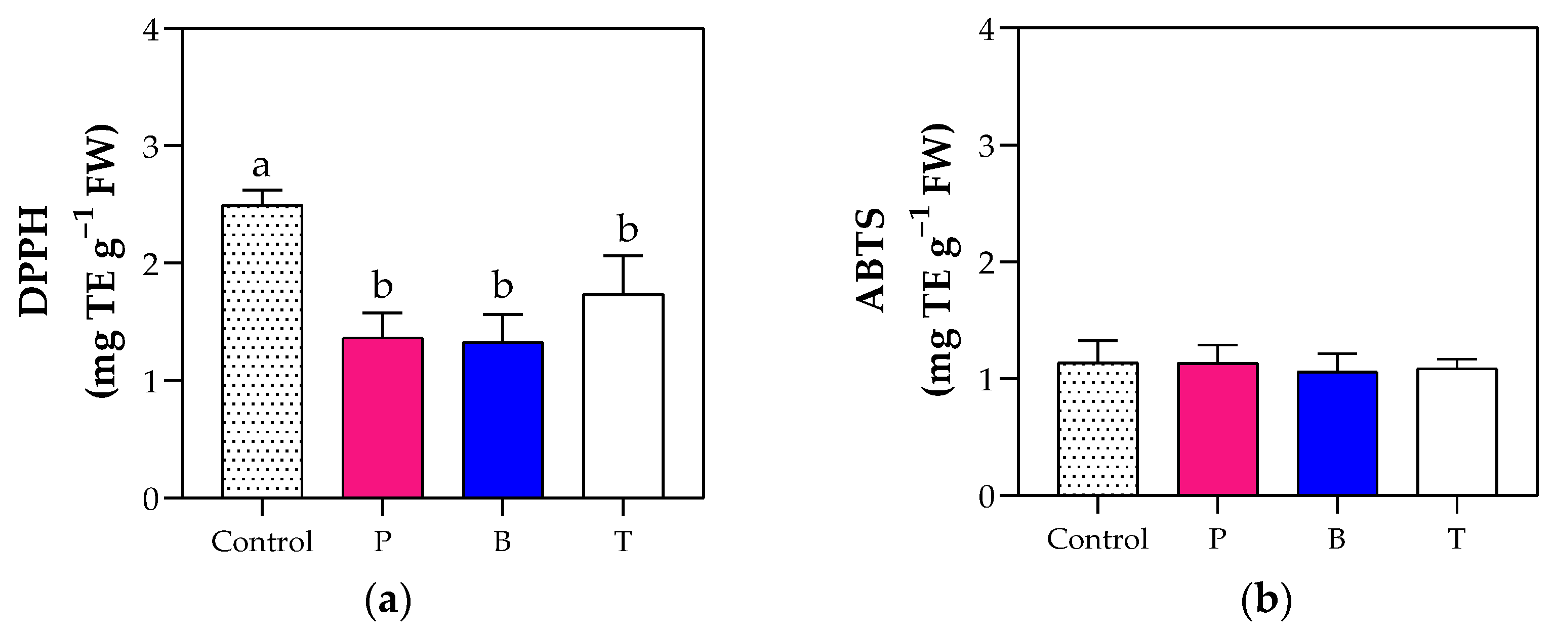 2.6. Extraction for Spectrophotometric Assays: Total Phenolic Content and Antioxidant Activity