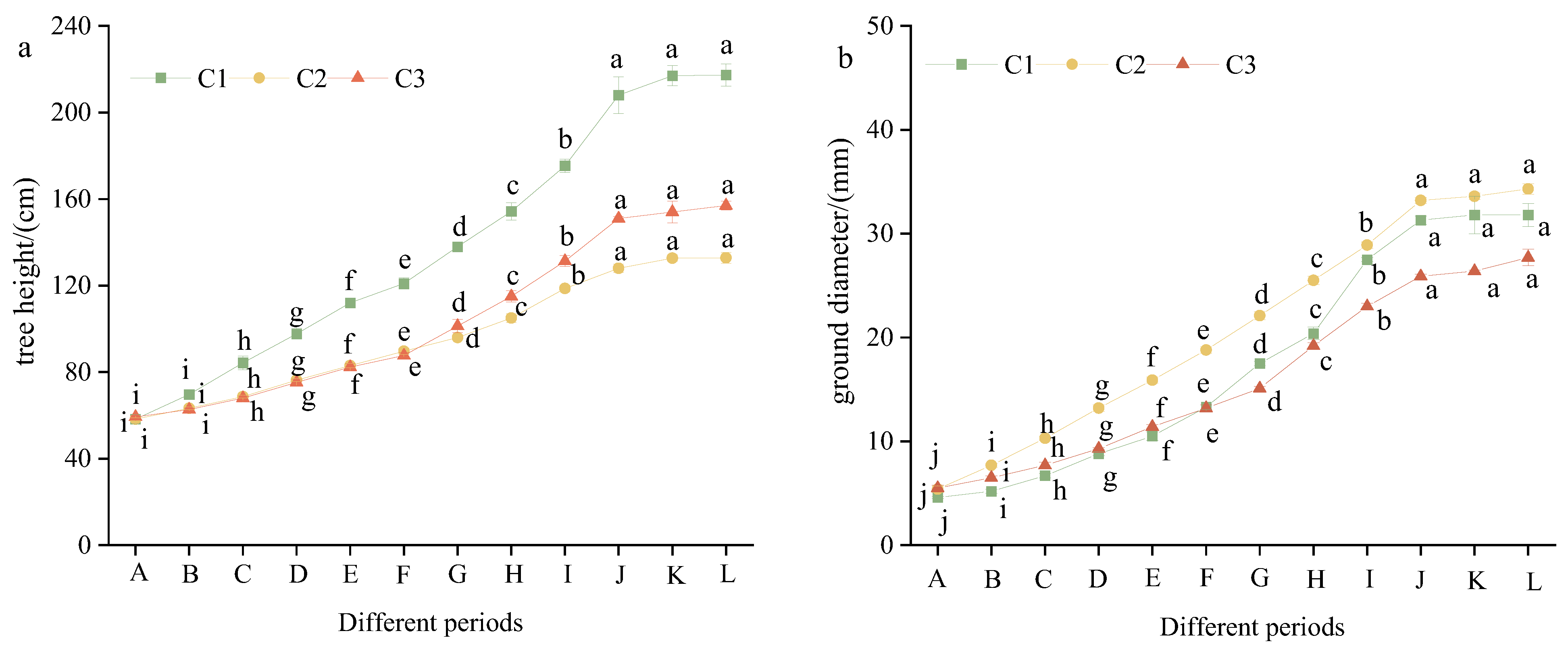 3.1. Differences in Morphological Indicators of Citral-Type C. officinarum at Different Stages