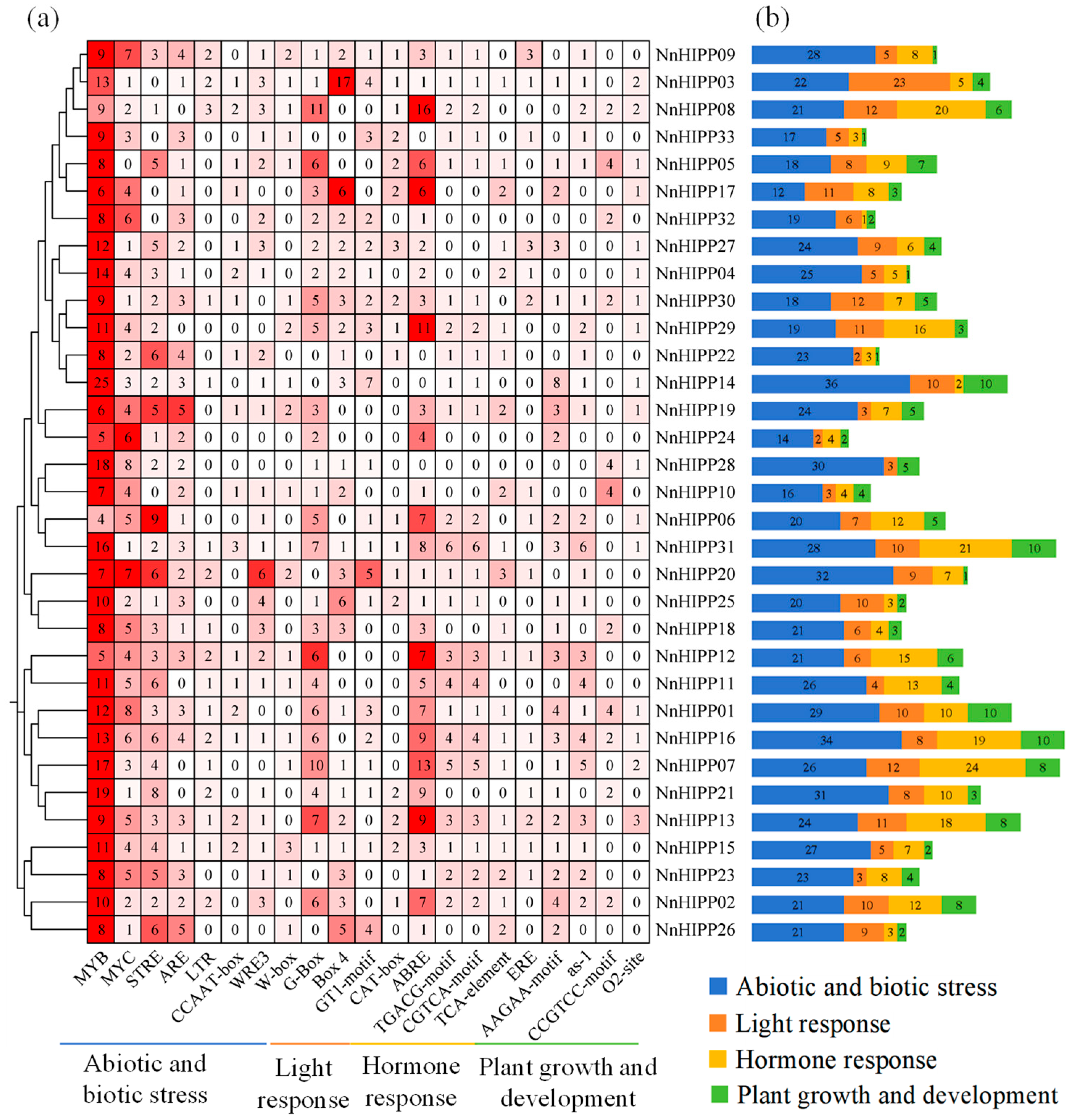 2.6. Analysis of NnHIPP Cis-Acting Elements