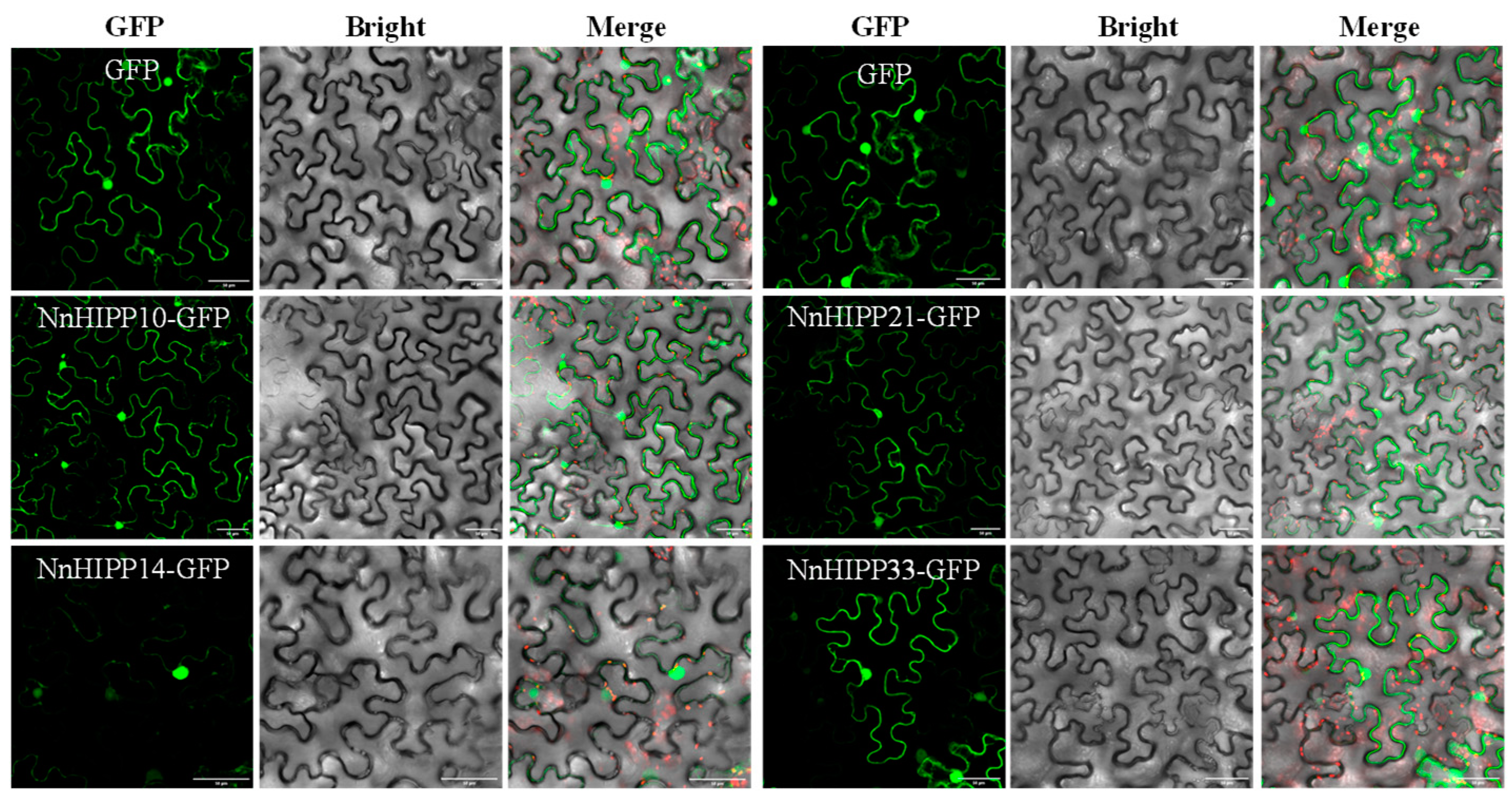 2.10. Heterologous Expression of the NnHIPPs in Yeast