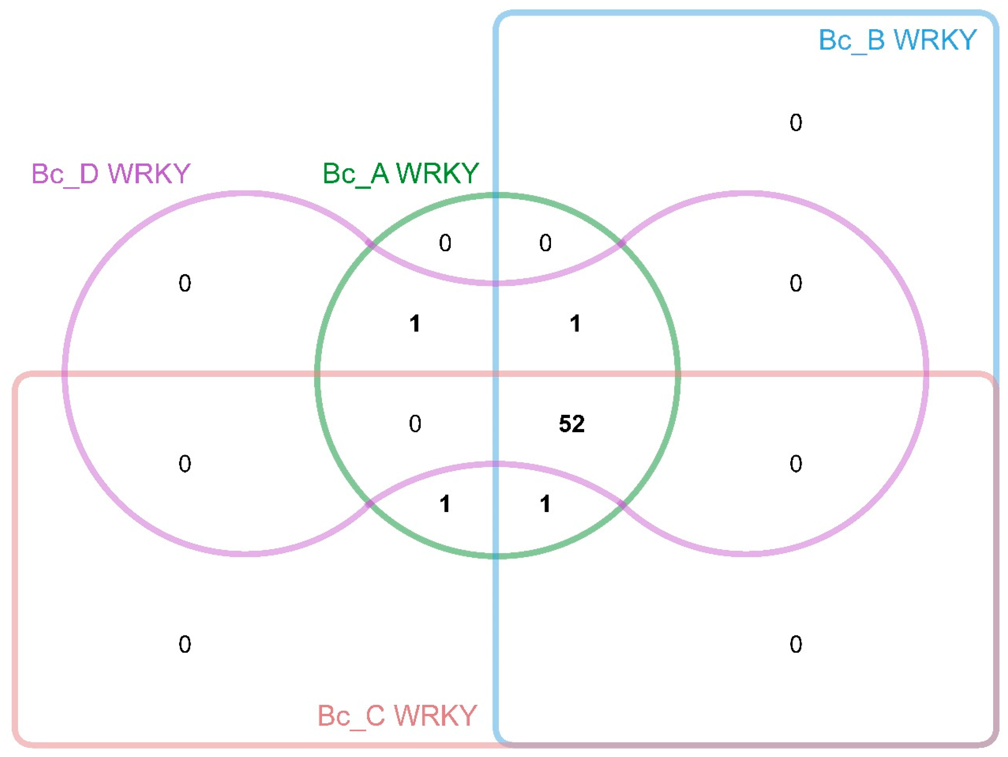 3.1. Genome-Wide Identification and Characterization of BcWRKY Genes