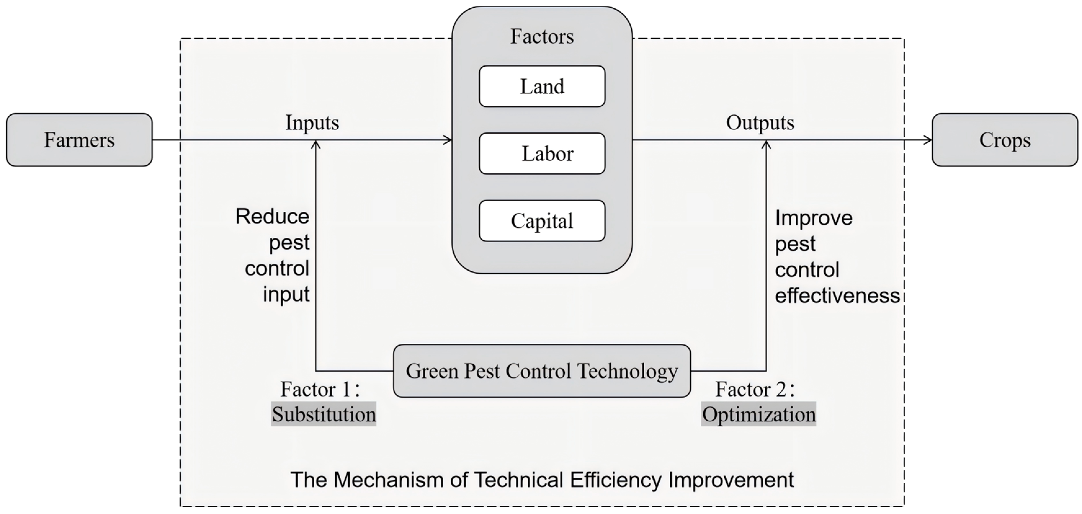 20]. From a sustainability and productivity perspective, however, focusing solely on yield or income may overlook whether green pest-control transitions improve the efficiency of input use, which ultimately underpins TFP growth.