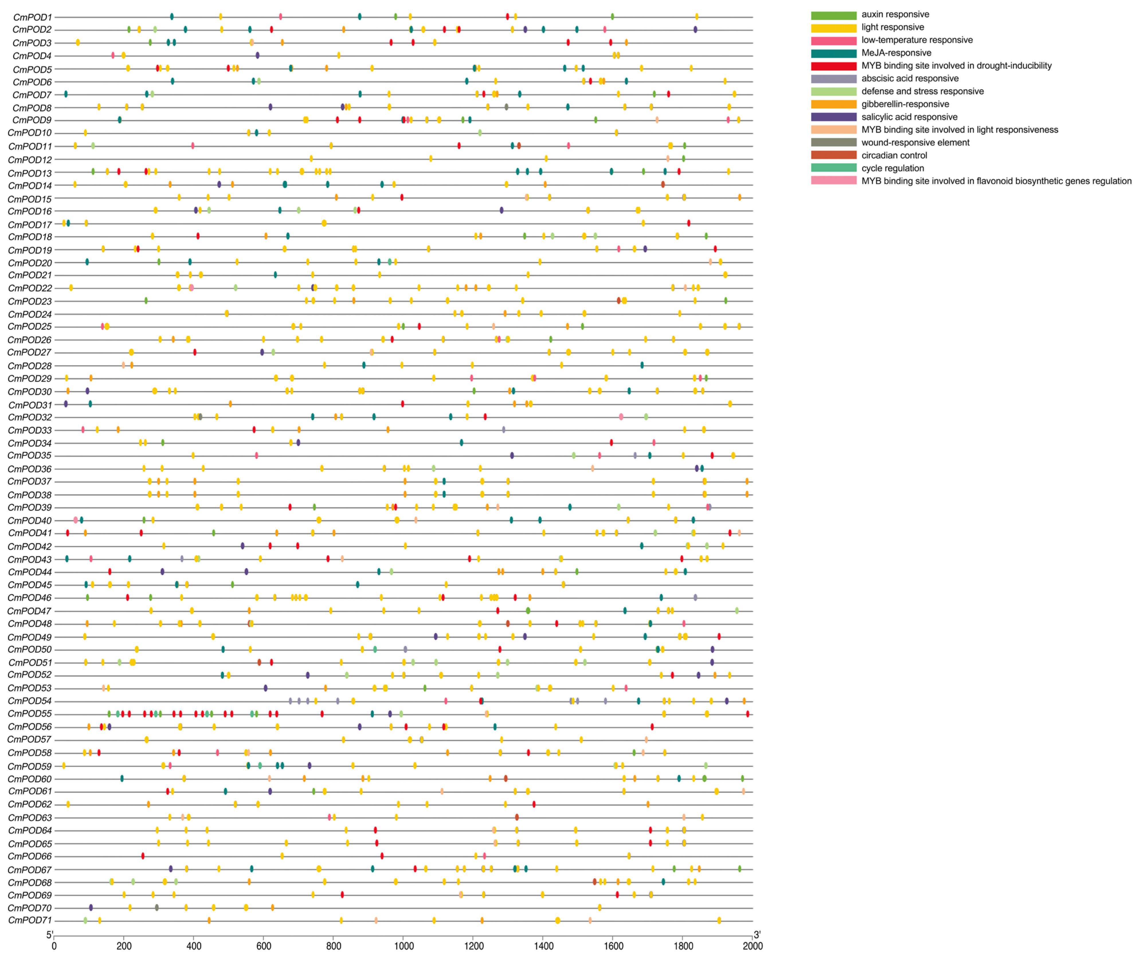 Figure 5. Cis-acting elements of CmPOD promoters.
