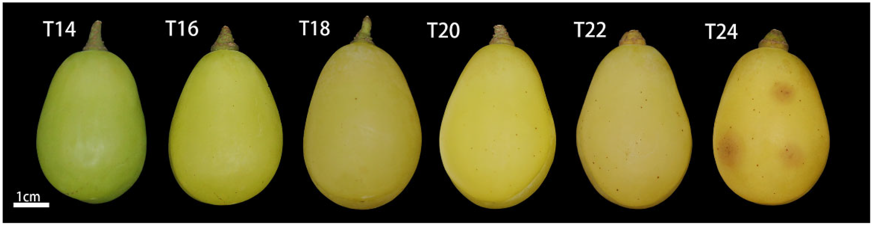 - Matsumoto, H.; Ikoma, Y. Effect of postharvest temperature on the muscat flavor and aroma volatile content in the berries of ‘Shine Muscat’ (Vitis labruscana Baily × V. vinifera L.). Postharvest Biol. Technol. 2016, 112, 256–265. [Google Scholar] [CrossRef]