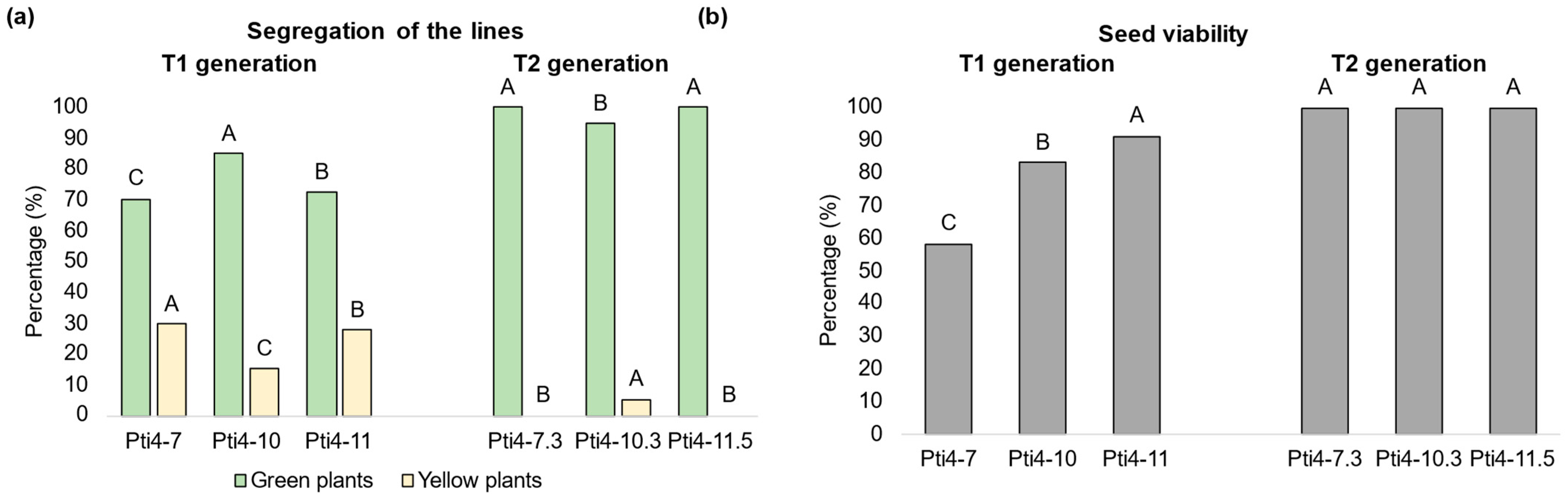 3.1. Generation of Homozygous Transgenic Tobacco Lines
