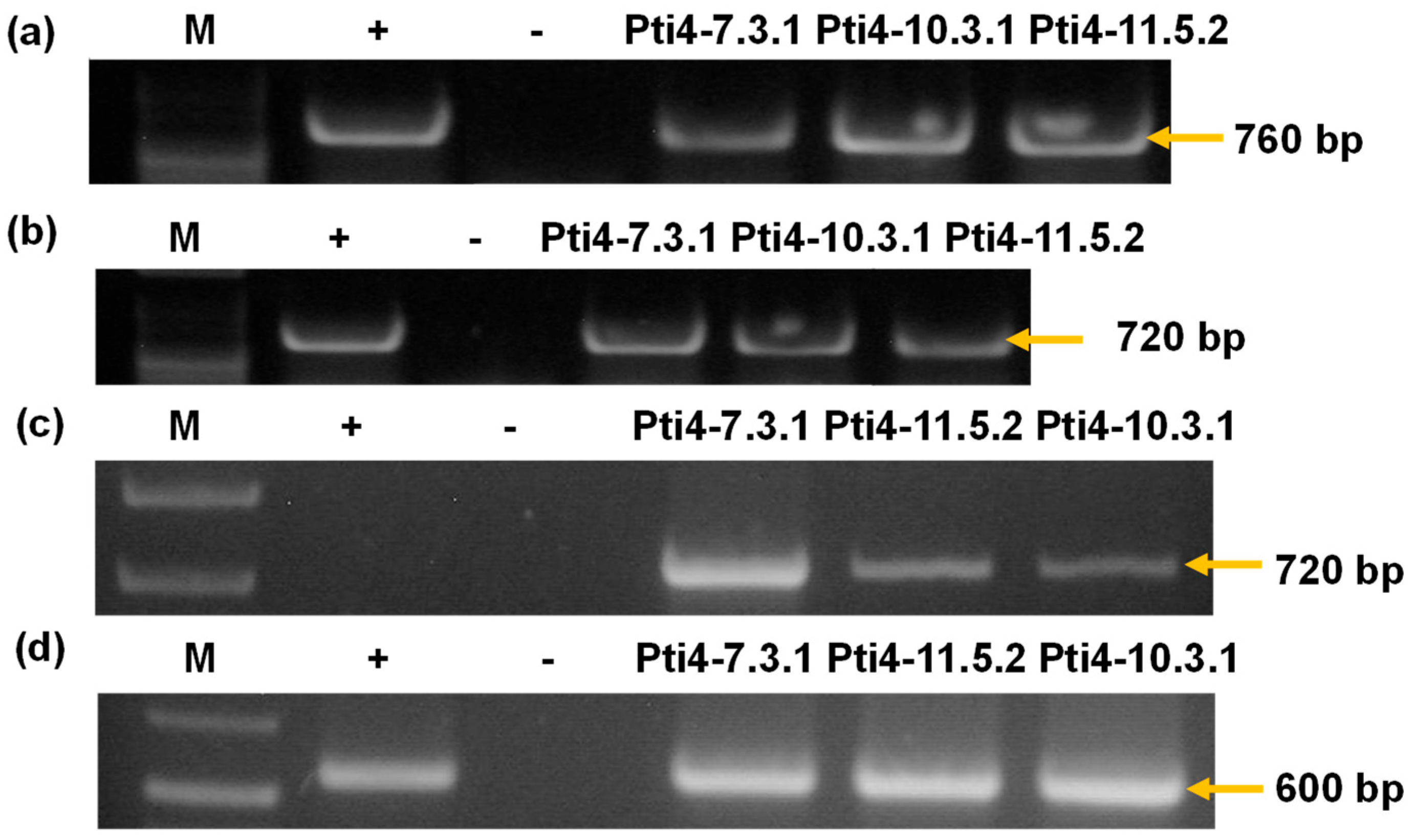 3.3. Semiquantitative Expression Analysis of the Gene of Interest Pti4