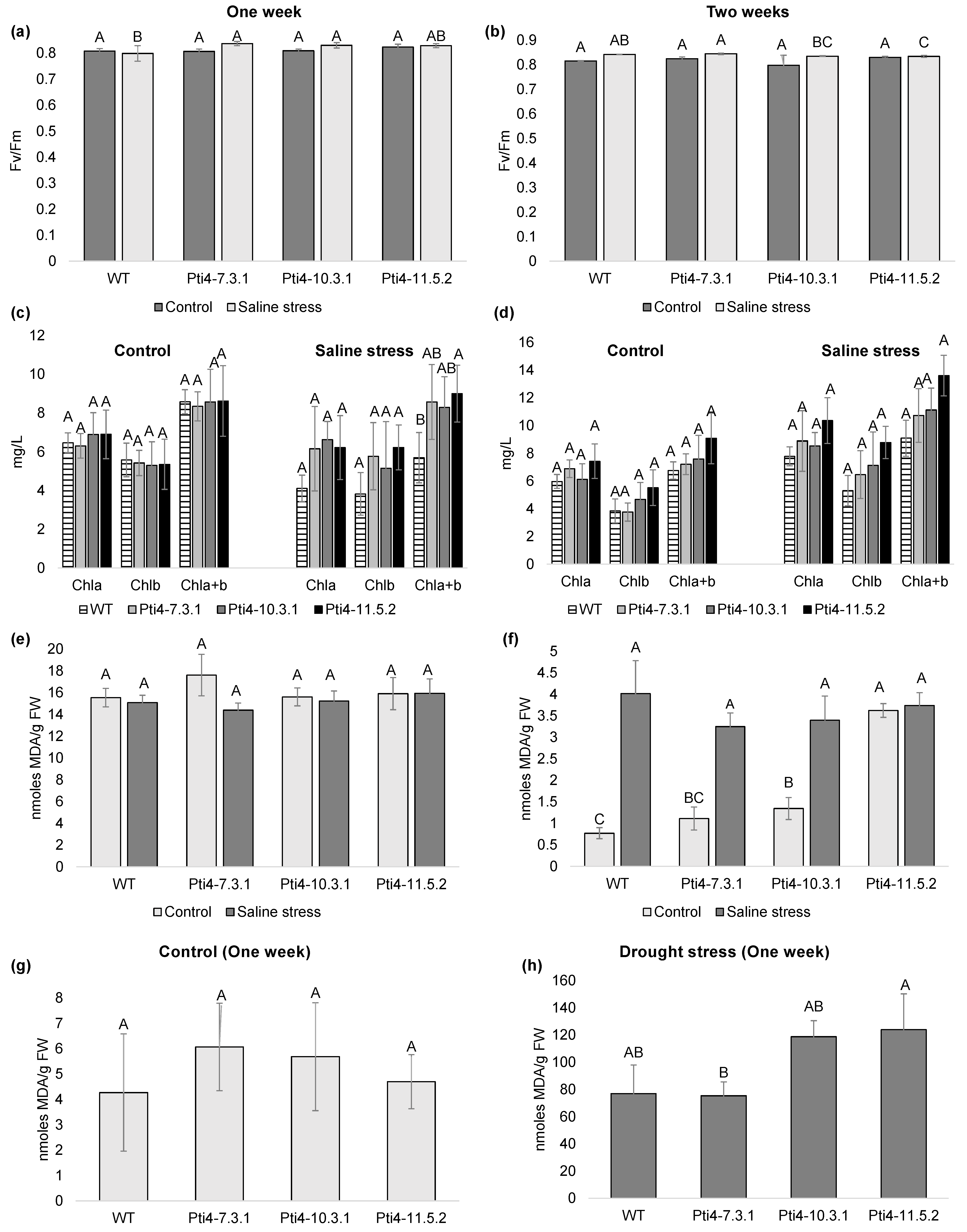2.7.2. Effect of Stress Tolerance in Tobacco Plants