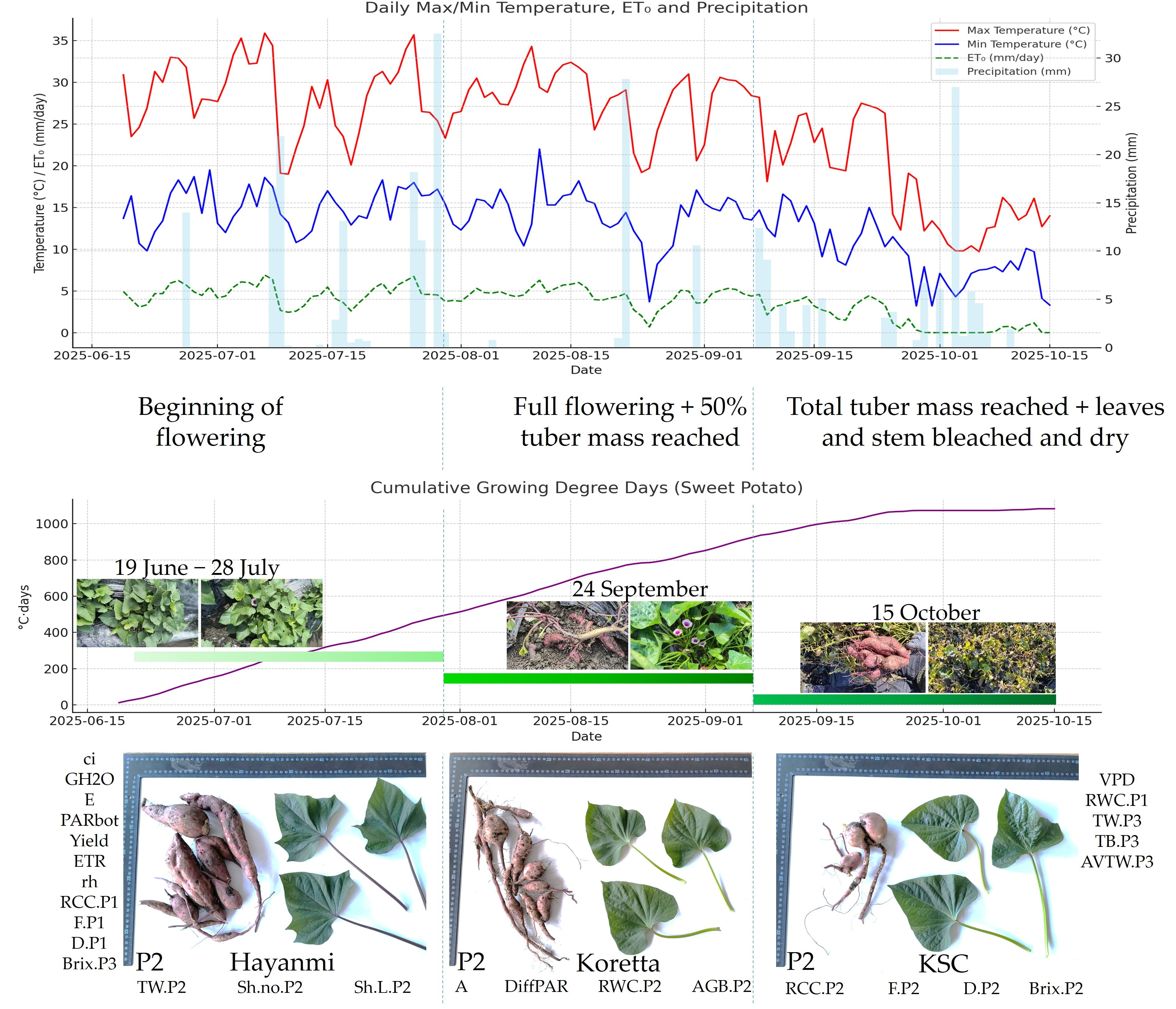 Stoian, V.A.; Croitoru, A.E.; Horvath, C.; Paraschiv, A.N.; Diaconu, A.; Copaciu, F.; Stoian, V.; Vâtcă, S.D. Ecophysiological Assessment of Sweet Potato Flowering and Tuber Development for Yield Optimization and Climate-Adaptive Cultivation in Romania. Horticulturae 2026, 12, 115. https://doi.org/10.3390/horticulturae12010115
