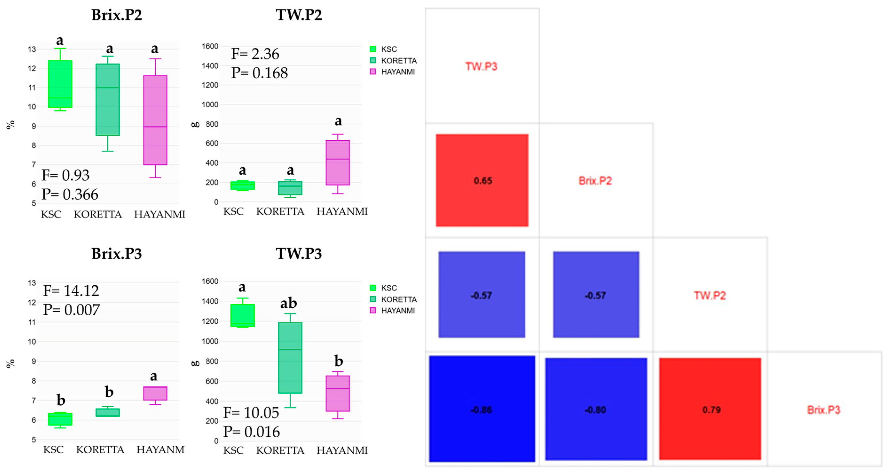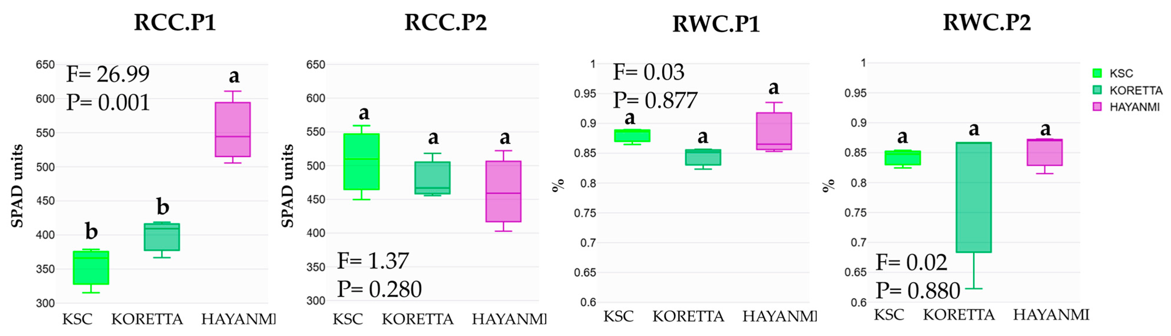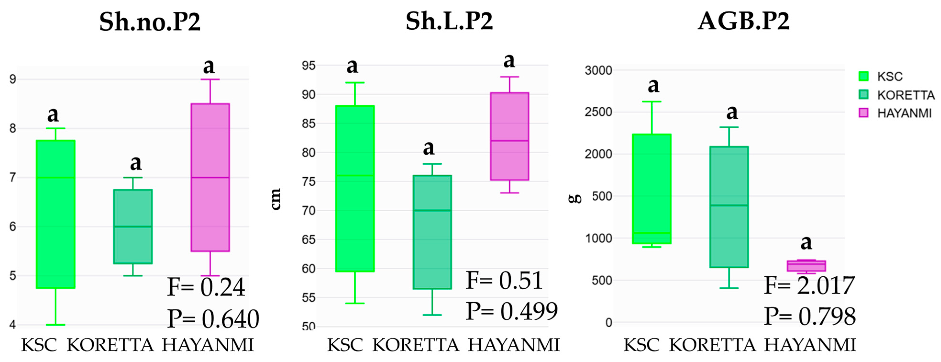 Koretta1108.57 ± 317.55 ab1792.85 ± 519.25 b104.01 ± 27.26 a326.66 ± 85.11 ab