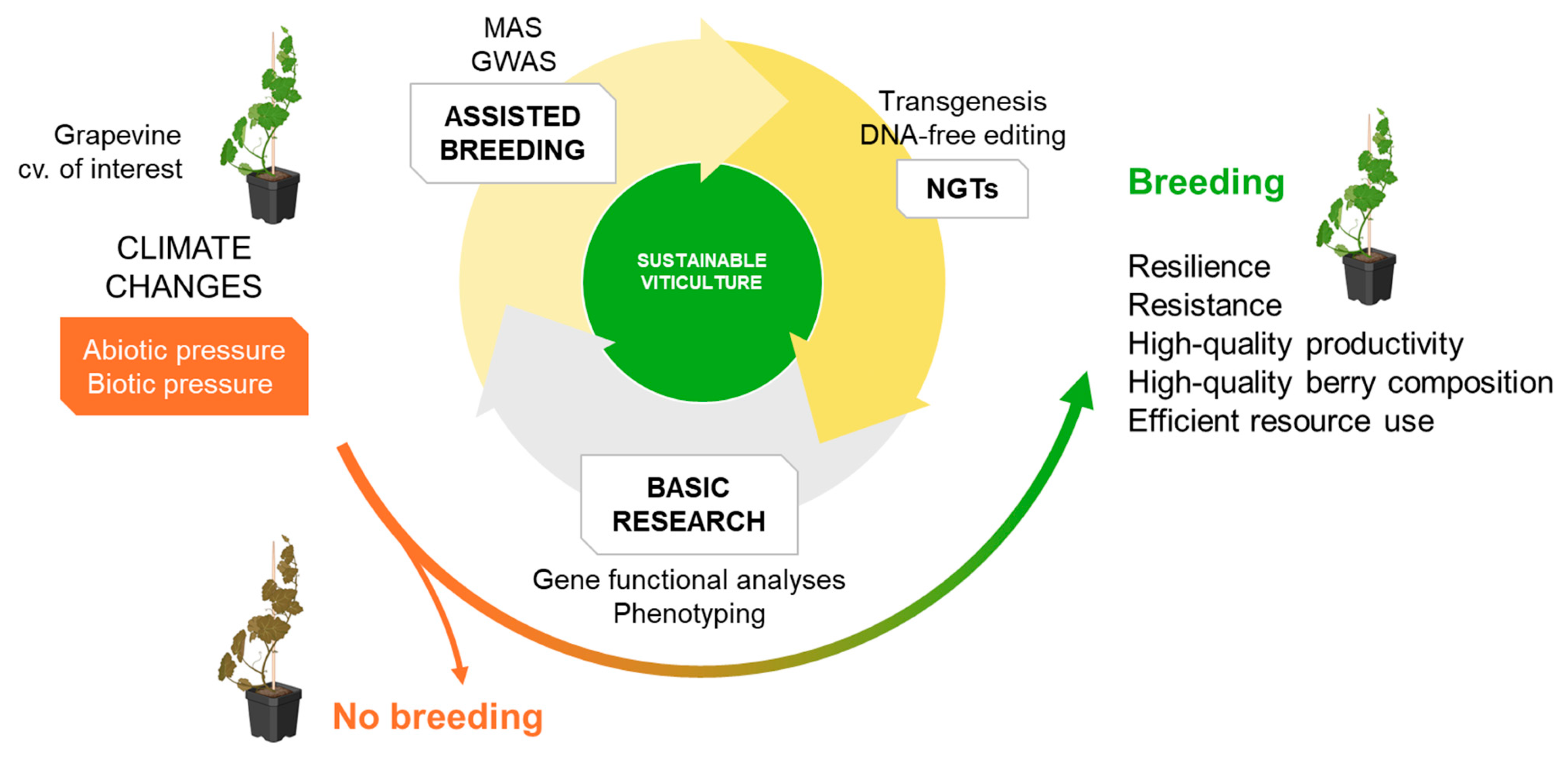 Carratore C, Amato A, Pezzotti M, Bellon O, Zenoni S. Genome Editing and Integrative Breeding Strategies for Climate-Resilient Grapevines and Sustainable Viticulture. Horticulturae. 2026; 12(1):117. https://doi.org/10.3390/horticulturae12010117