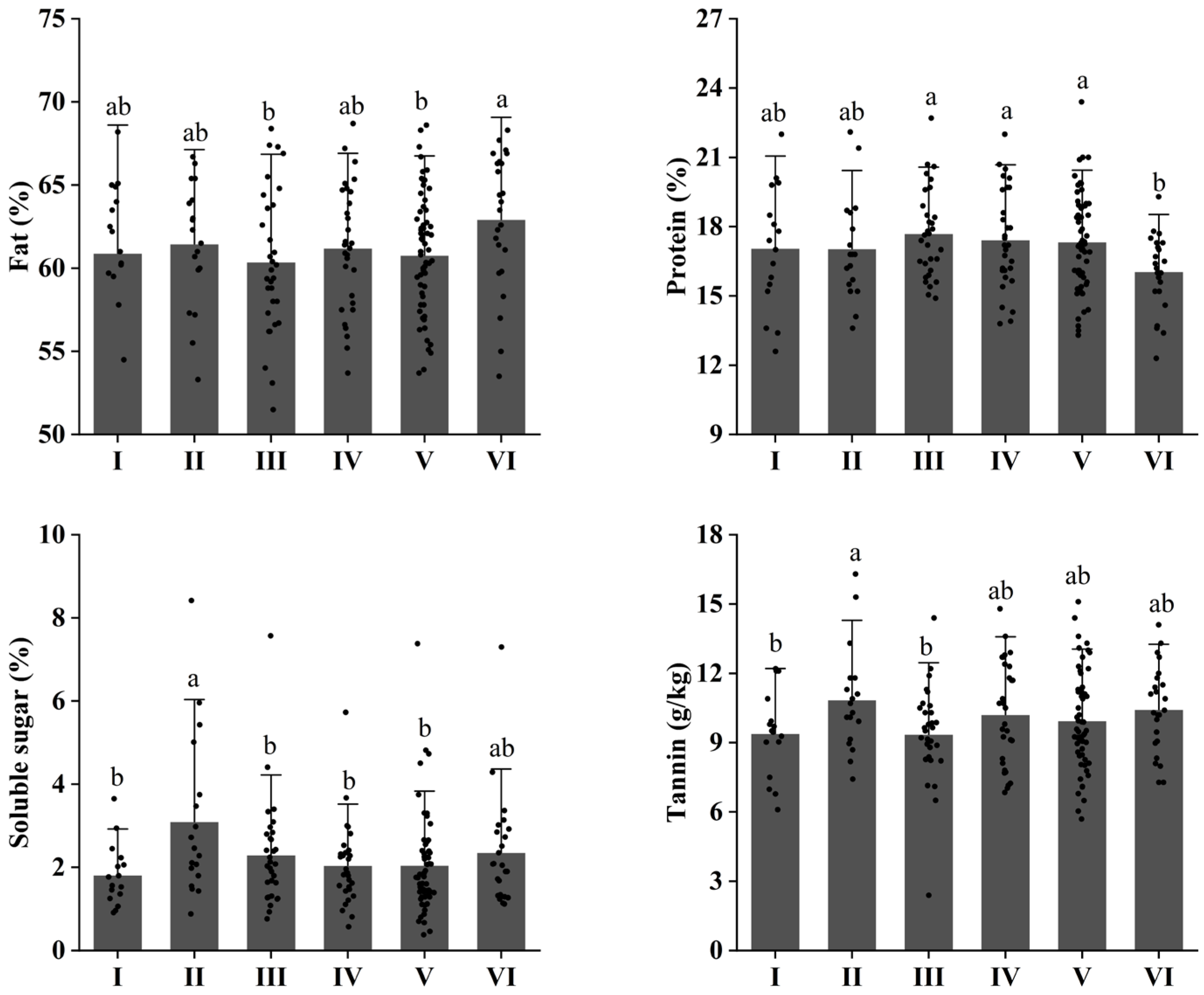 | Tannin (g/kg) | 9.997 | 2.099 | 16.3 | 2.39 | 13.91 | 0.21 |