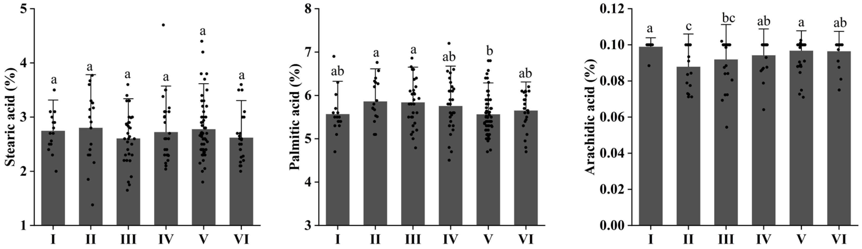 | Arachidic acid (%) | 0.095 | 0.01 | 0.103 | 0.054 | 0.048 | 0.101 |