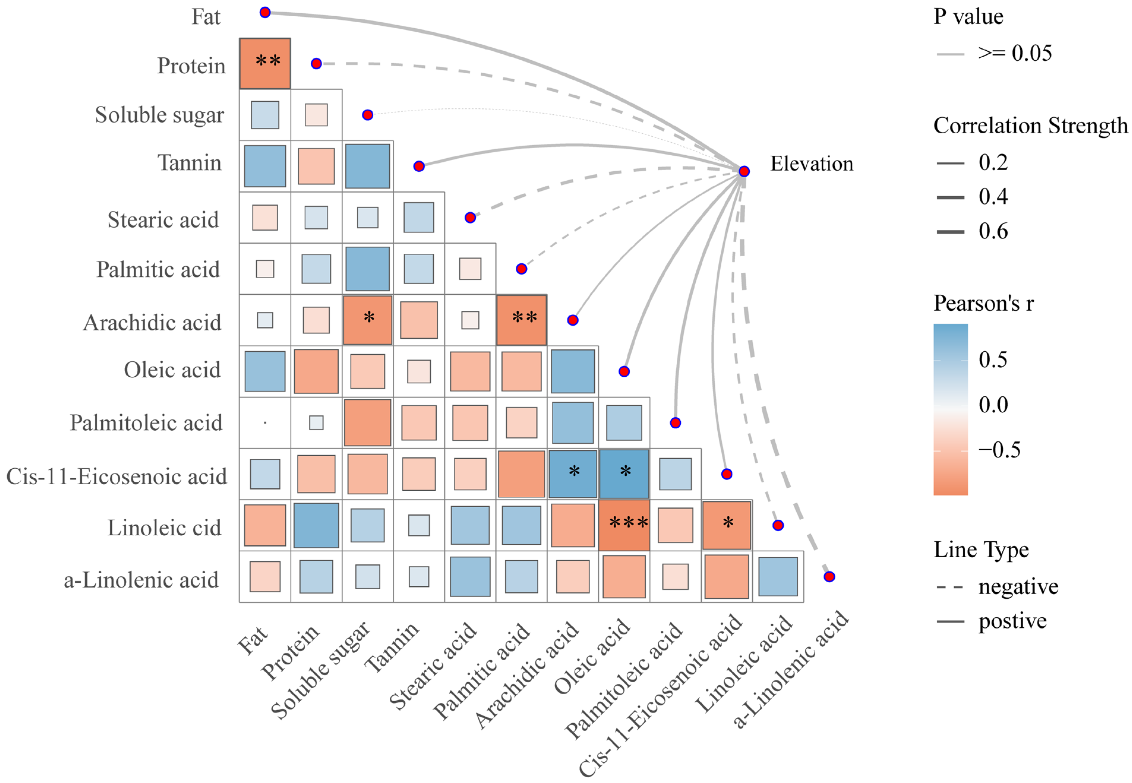 | α-Linolenic acid | 0.275 | −0.115 | 0.253 | 0.518 | −0.655 |