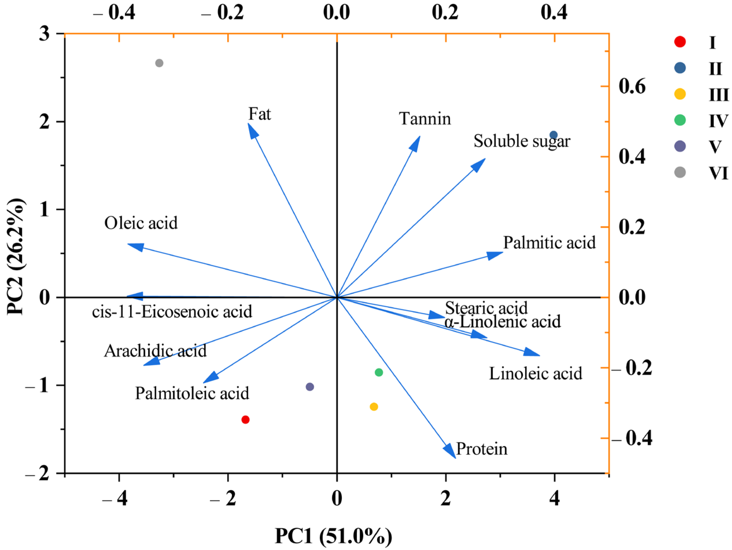 | Stearic acid | 0.198 | −0.057 | 0.705 | −0.008 | 0.087 |