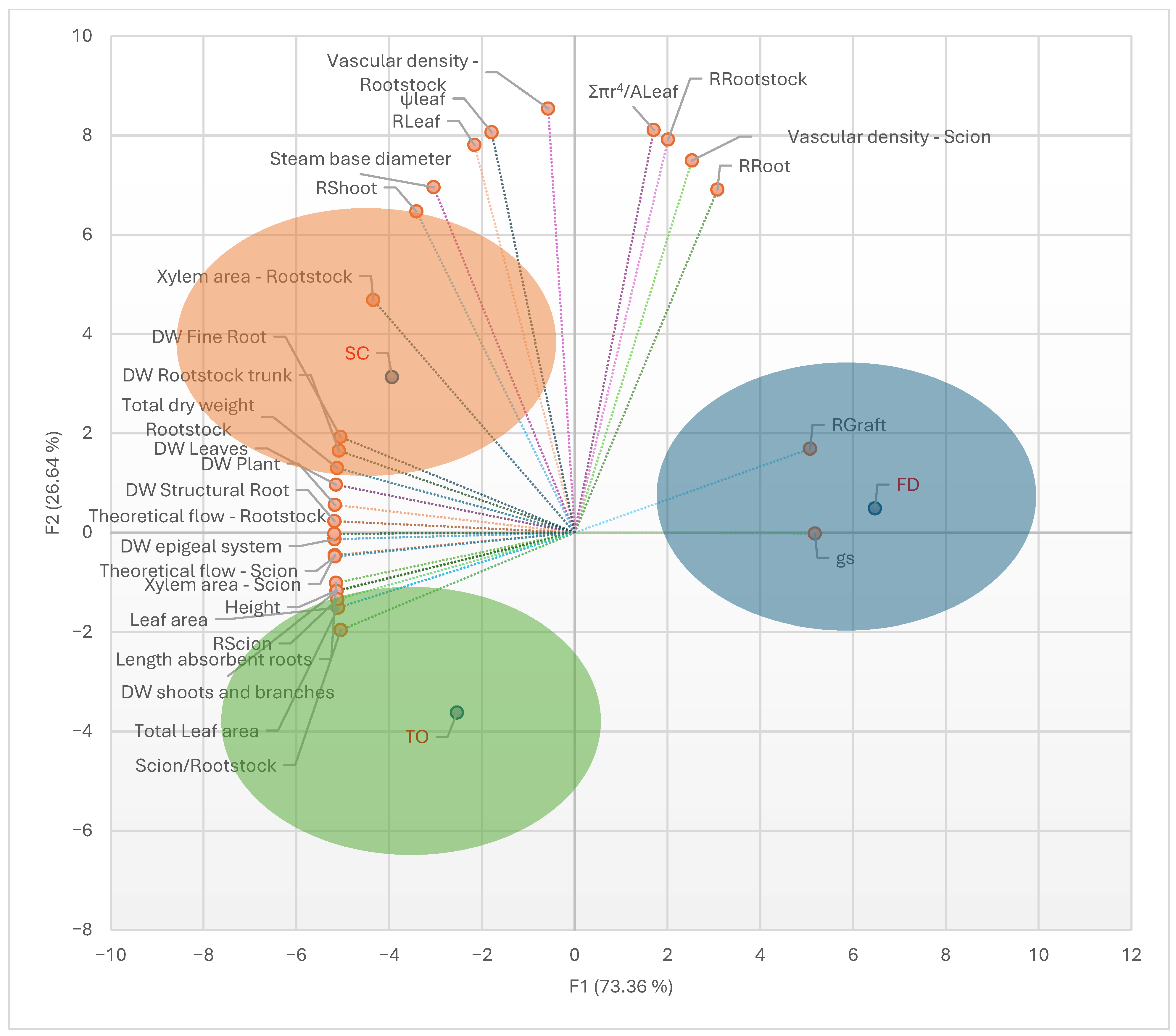 | Xylem area—rootstock (mm2) | 0.7026 | 0.2974 |