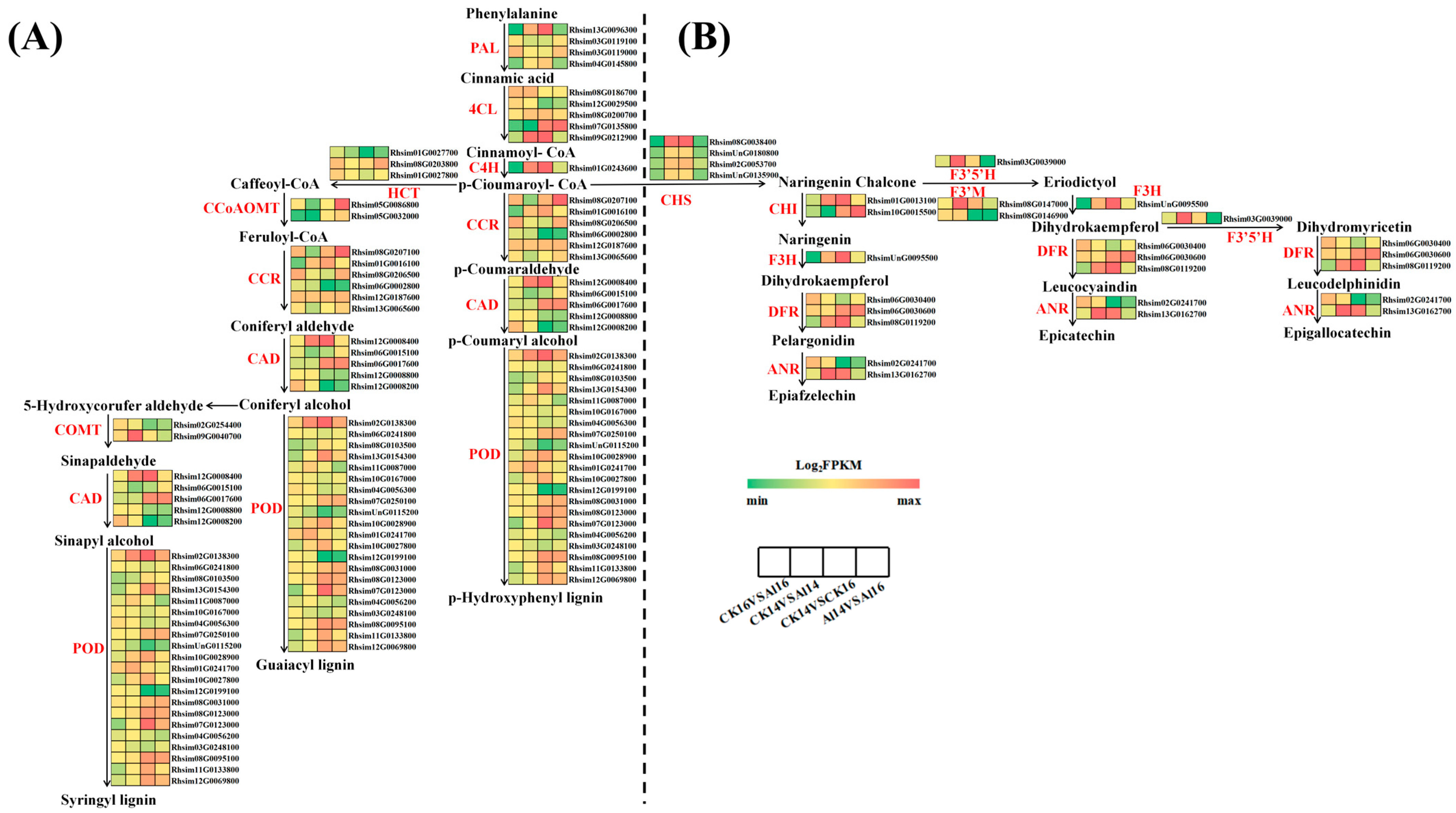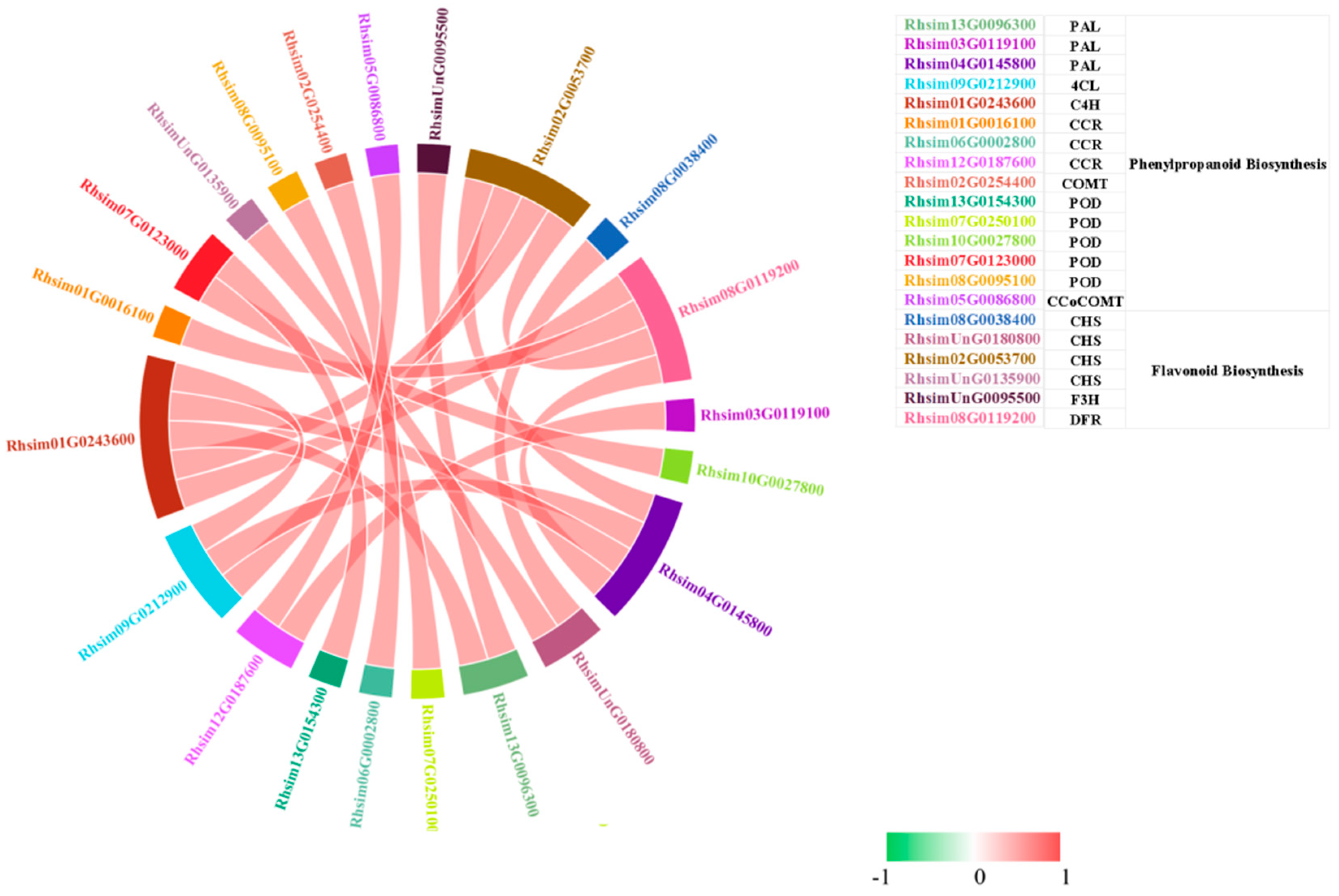 3.4. Expression Profiles of Genes Involved in Phenylpropanoid and Flavonoid Biosynthesis