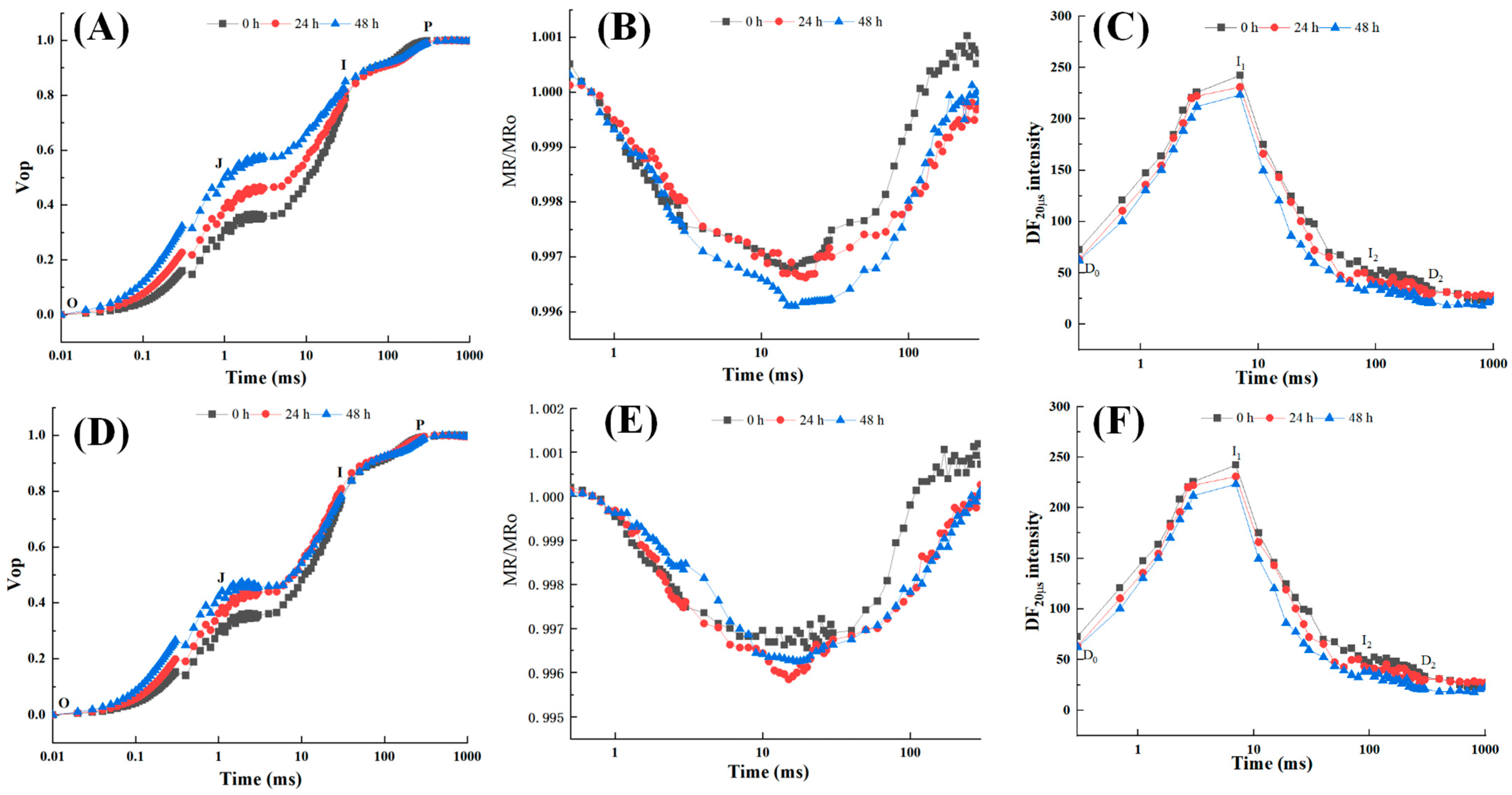 - Zhou, R.; Kan, X.; Chen, J.; Hua, H.; Li, Y.; Ren, J.; Feng, K.; Liu, H.; Deng, D.; Yin, Z. Drought-induced changes in photosynthetic electron transport in maize probed by prompt fluorescence, delayed fluorescence, P700 and cyclic electron flow signals. Environ. Exp. Bot. 2019, 158, 51–62. [Google Scholar] [CrossRef]