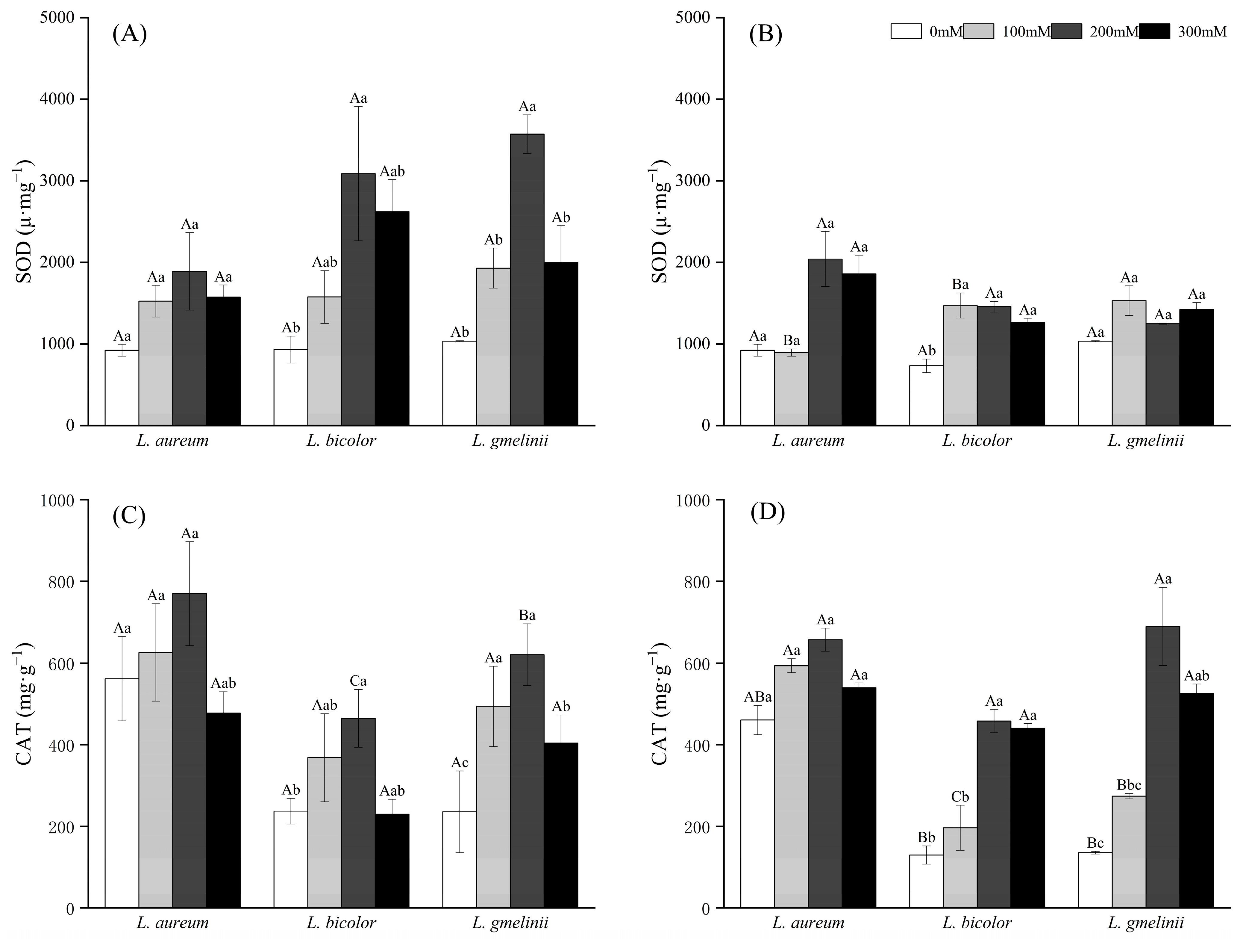 | NaCl 200 | 0.51 ± 0.03 Aab | 0.30 ± 0.01 Abc | 0.55 ± 0.14 Aab | |
