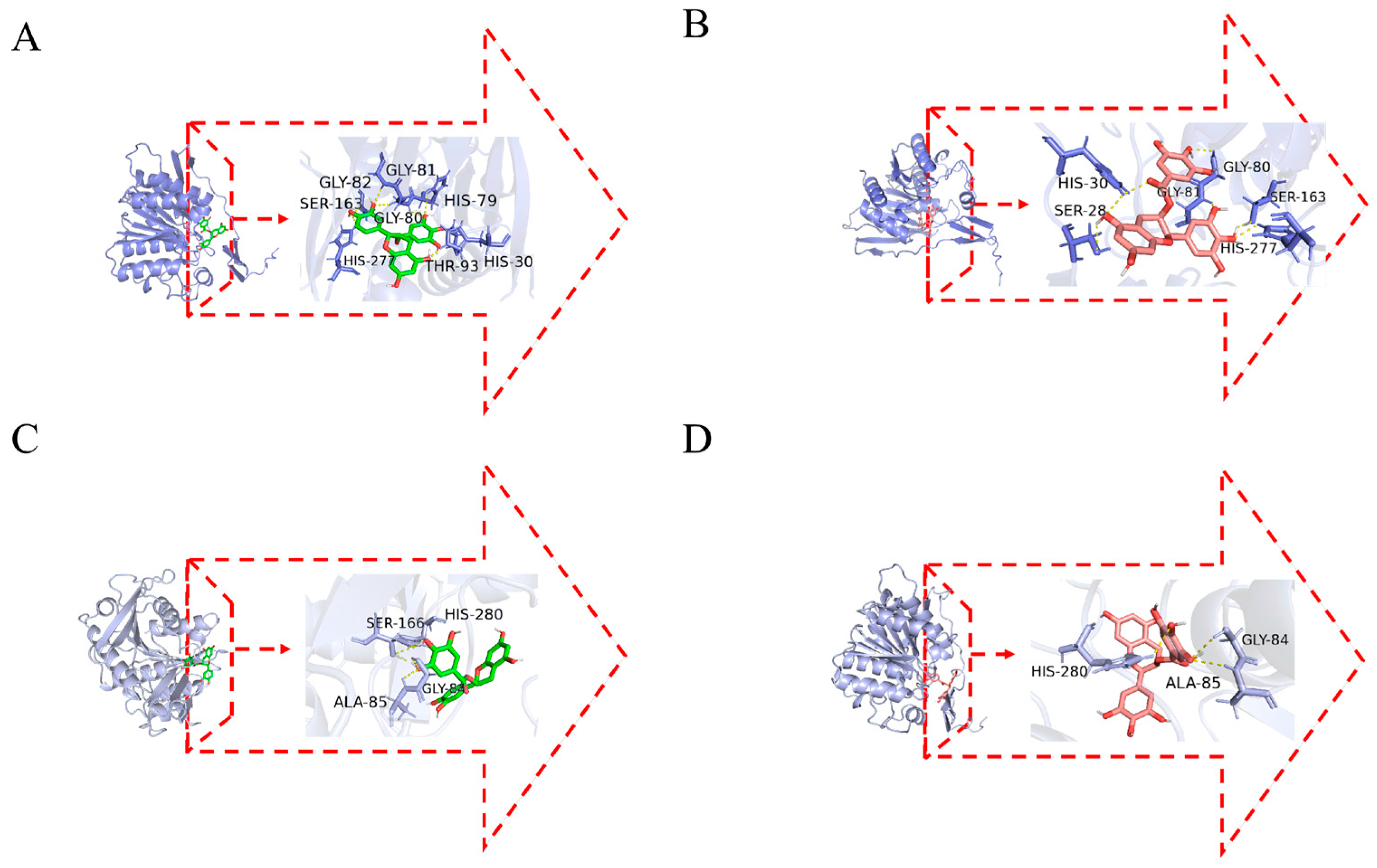 https://pubchem.ncbi.nlm.nih.gov/ (accessed on 24 October 2025)). Molecular docking was subsequently performed using AutoDock Vina (version 1.1.2), with the JrTAs protein serving as the receptor and various types of catechin molecules as the ligands.