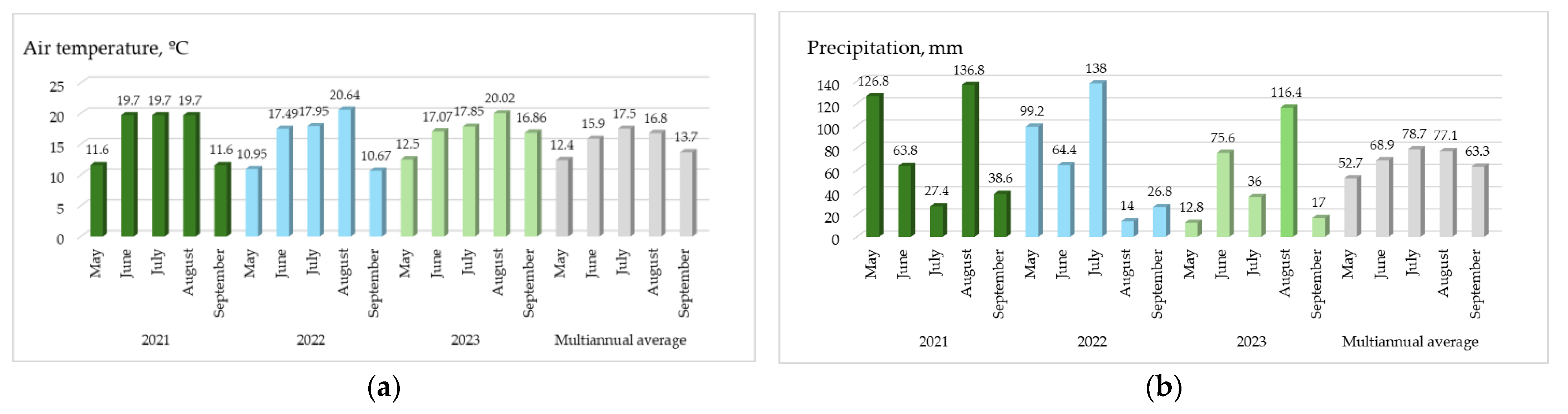 | Year of Investigation | Air Temperature, °C (Avg., Min., and Max.) | Precipitation, mm | Cultivar | ||||