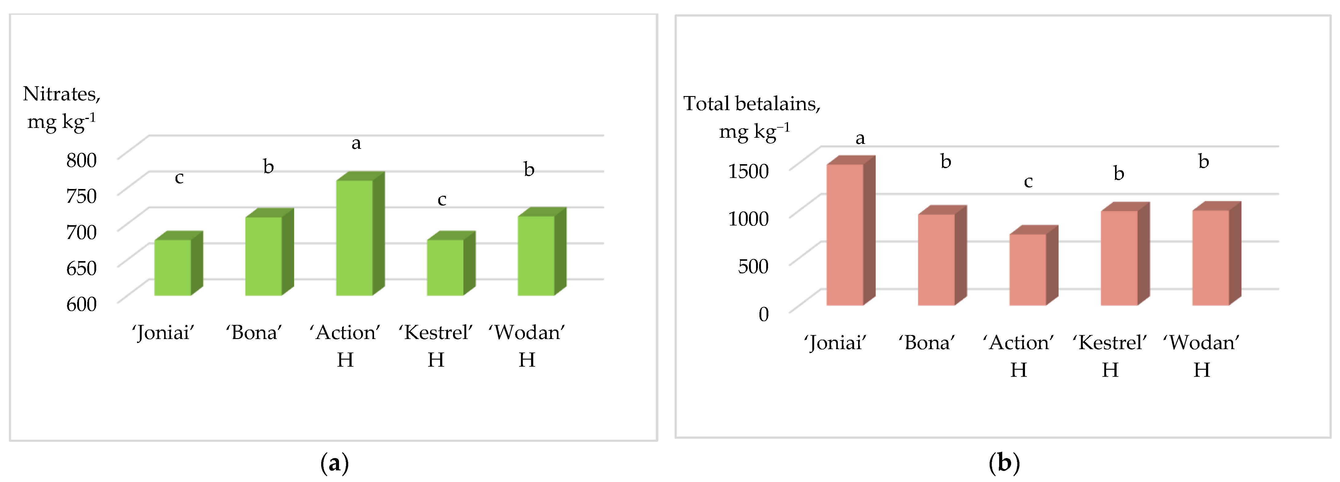 | ‘Bona’ | 9.03 ± 0.69 d | 15.2 ± 0.63 a | 13.2 ± 0.06 b | 14.83 ± 0.15 c |