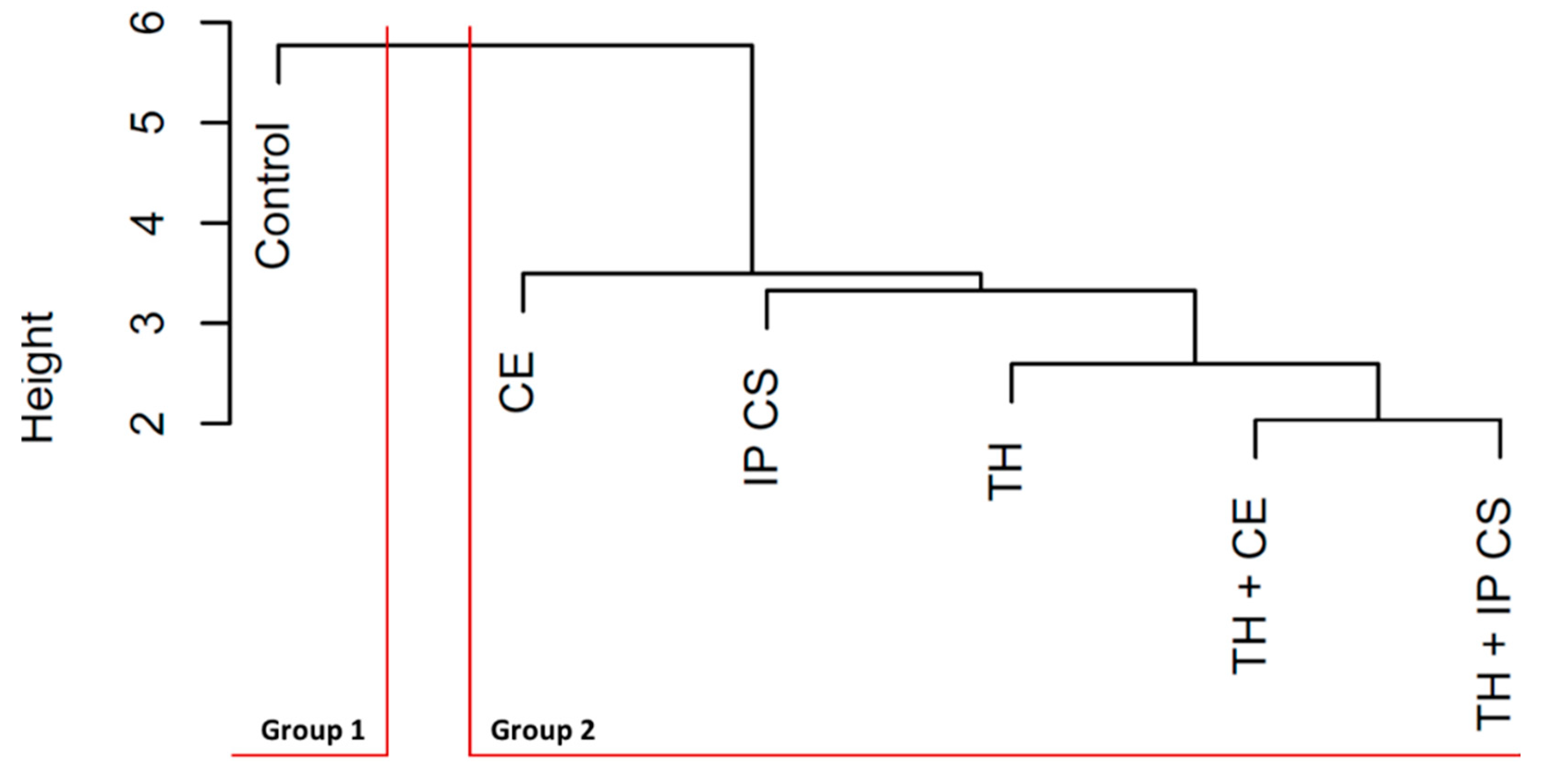 | TH + CE | 5.60 ± 0.93 ab | 7.27 ± 0.00 ab | 5.07 ± 0.27 ab | 123.51 ± 6.27 a | 1363.71 ± 58.15 a |