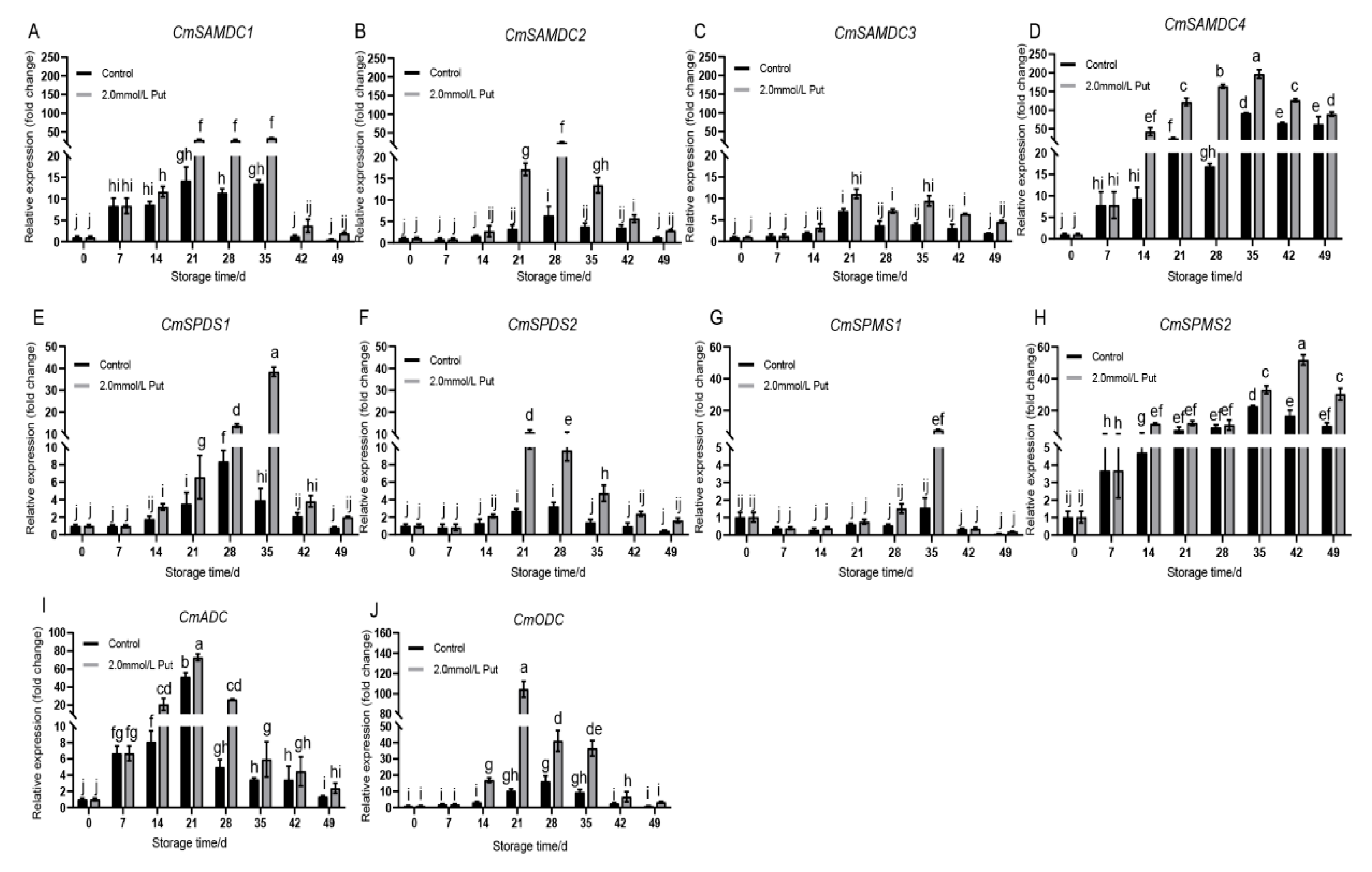 3.4. Put Treatment Induced the Expression of Genes Involved in the Polyamine Pathway