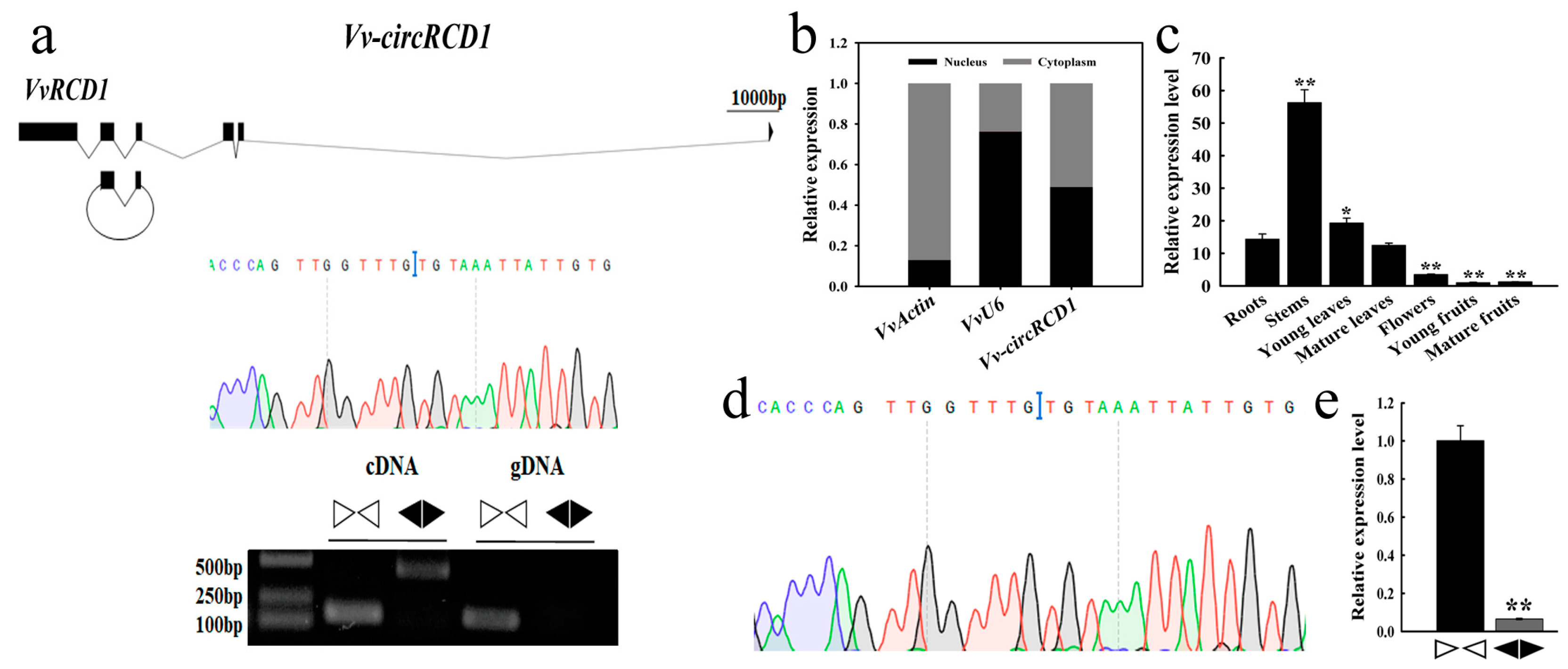 4.1. Validation and Characterization of Vv-circRCD1