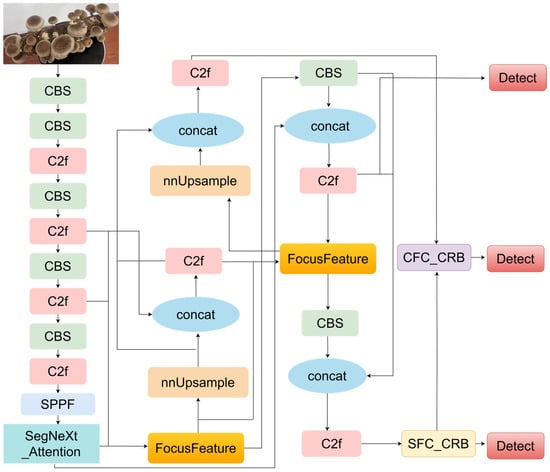 Technically, YOLOv8n-CFS is built upon the lightweight YOLOv8n architecture and integrates SegNeXt Attention, the Feature Diffusion Pyramid Network (FDPN), and the Cross-Stage Fully Connected Network (CSFCN). This integrated design enhances feature extraction capability, semantic aggregation, and multi-scale feature fusion, which is particularly beneficial for maturity detection under complex backgrounds, occlusion, and scale variation commonly encountered in mushroom cultivation scenarios.