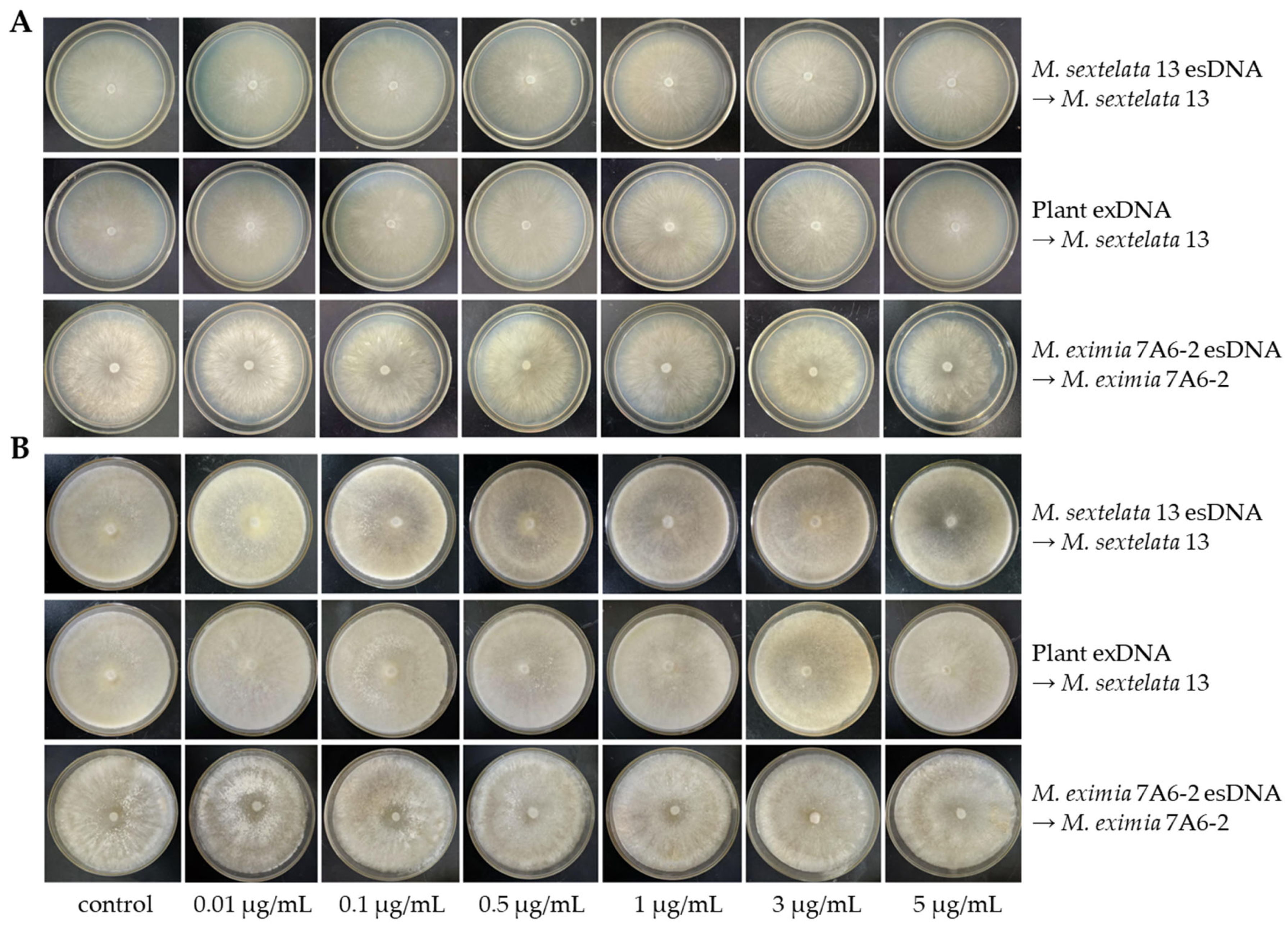 2.4. Effects of Extracellular DNA on Fungal Growth