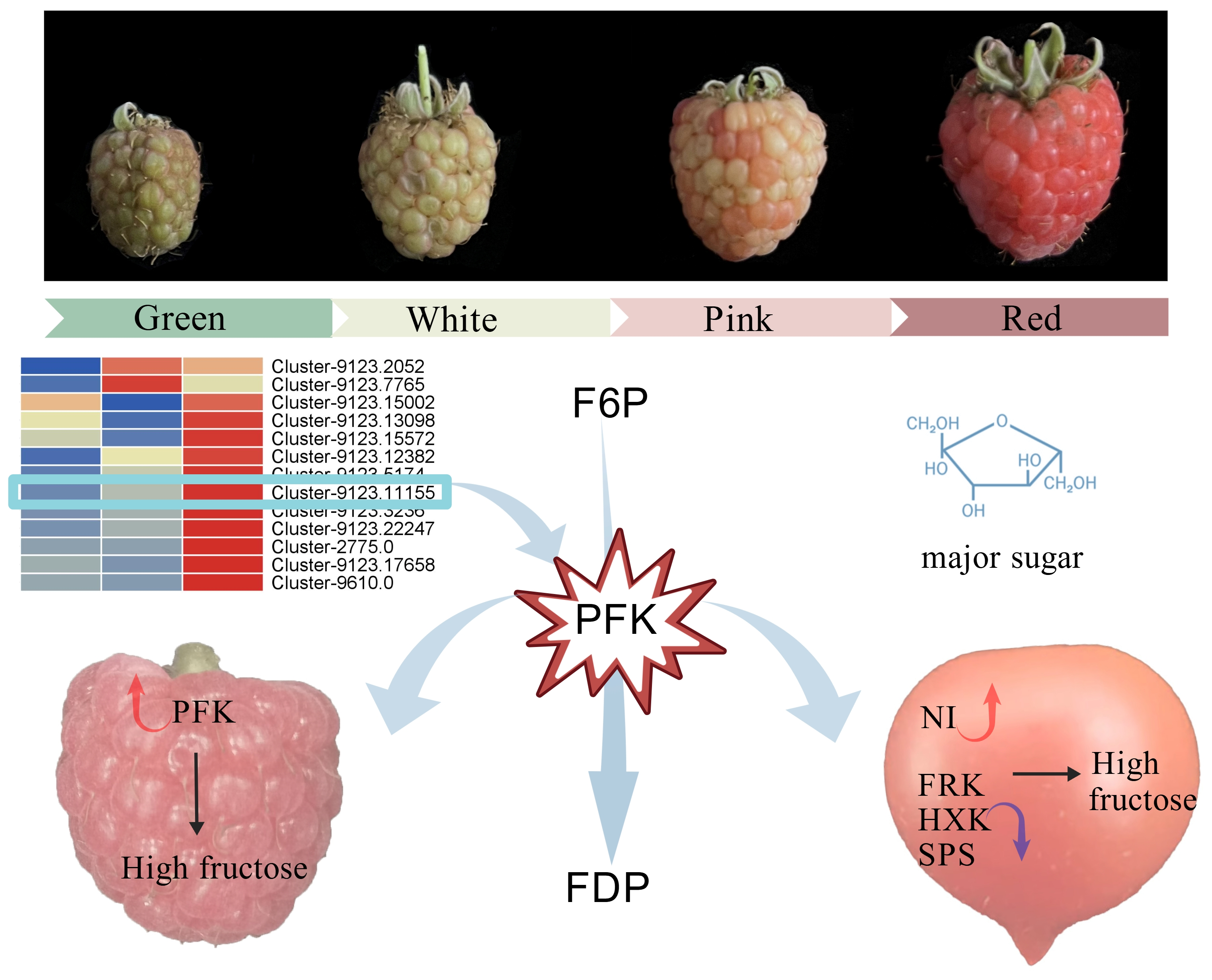 Xu B, Zhang T, Ling X, Yang F, Wen Y, Yang G, Li T. Functional Identification of the RiPFK2 Gene in Raspberry (Rubus idaeus L.) Demonstrates That It Enhances Fructose Content Inside Fruits. Horticulturae. 2026; 12(1):79. https://doi.org/10.3390/horticulturae12010079