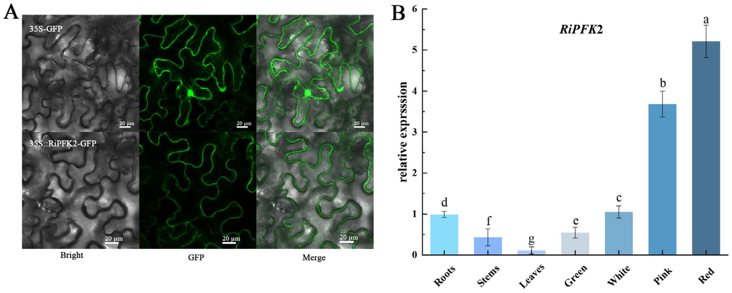 2.7. RiPFK2 Subcellular Localization Analysis of RiPFK2 in Tobacco (Nicotiana benthamiana)