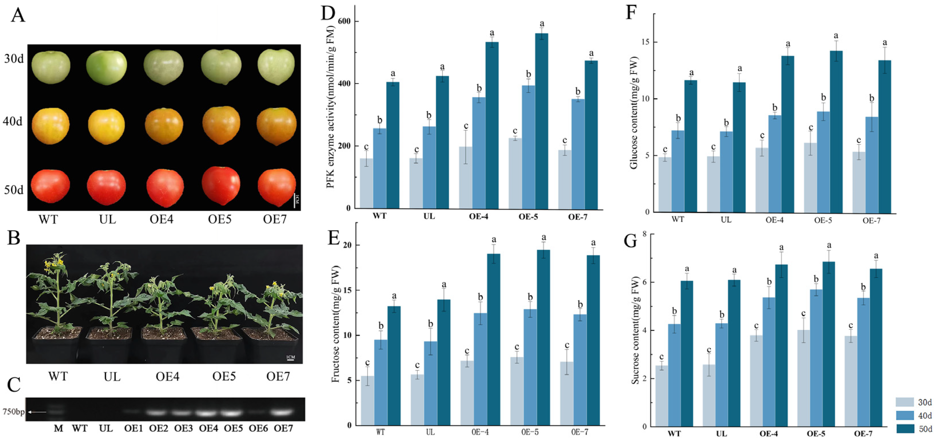3.5. Functional Validation of RiPFK2 in Enhancing Sugar Content in Tomato Fruits